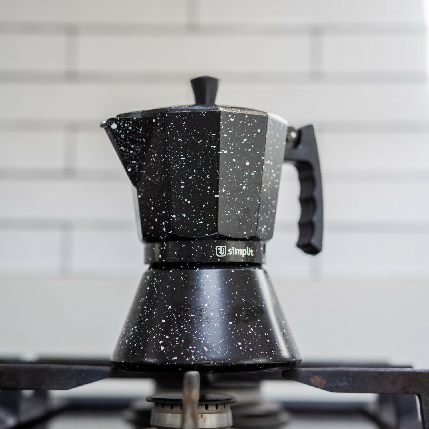 Descubre el sabor auténtico del café con la Cafetera Italiana Simplit, ideal para quienes disfrutan de un café intenso y lleno de aroma. Su diseño elegante en color negro granito no solo destaca en tu cocina, sino que también ofrece una preparación tradicional que resalta lo mejor del café molido.