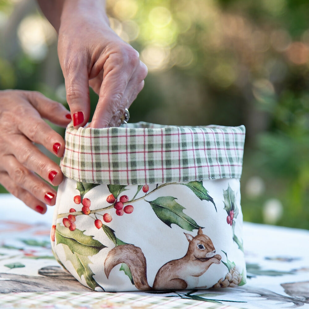 Celebra esta Navidad con detalles que hacen la diferencia. Nuestra panera Woodland es el toque perfecto para vestir tu mesa con estilo y calidez. Confeccionada en suave gamuza poliéster, su diseño textil aporta un acabado elegante y acogedor, ideal para presentar pan, galletas o dulces navideños.