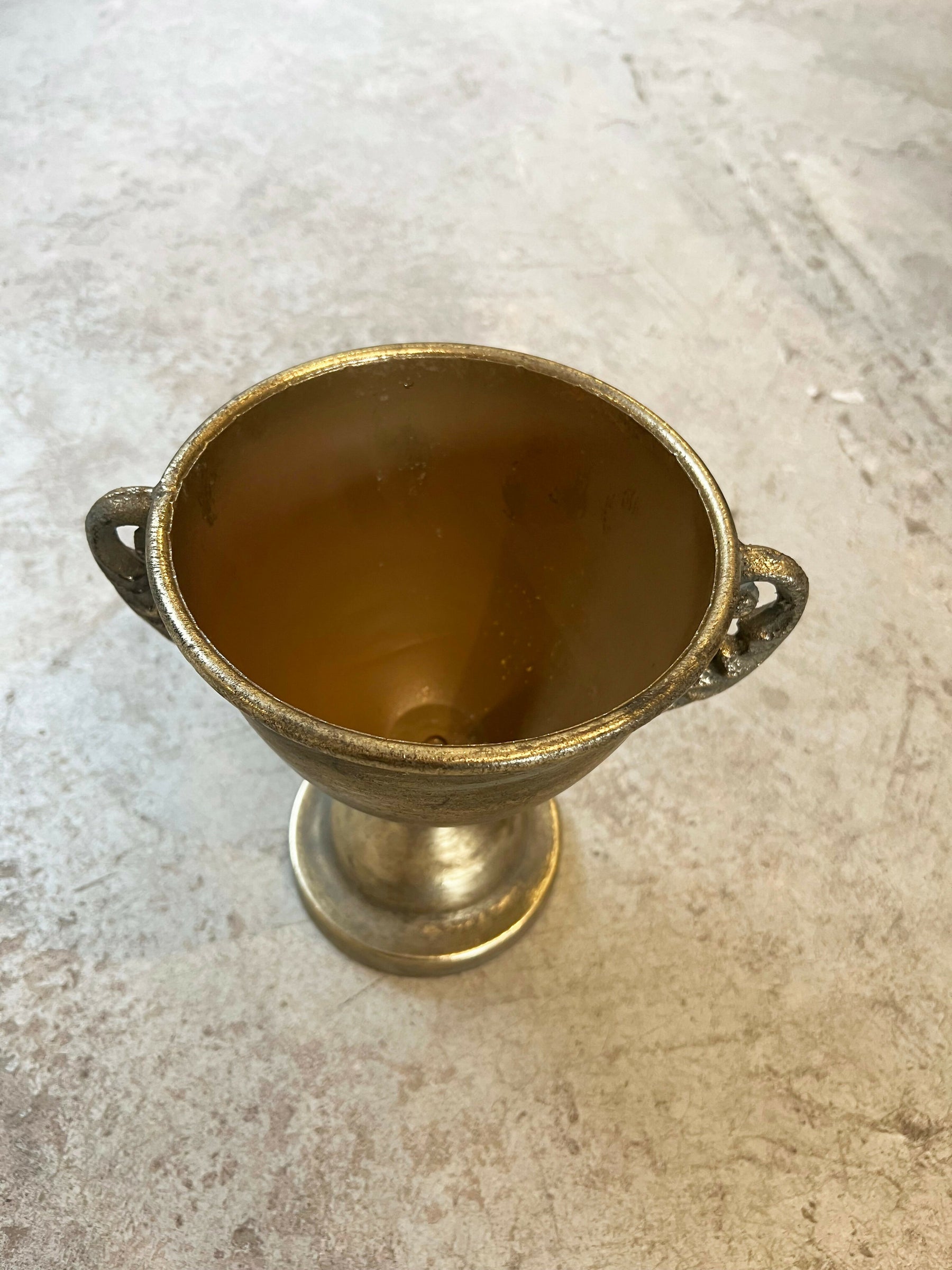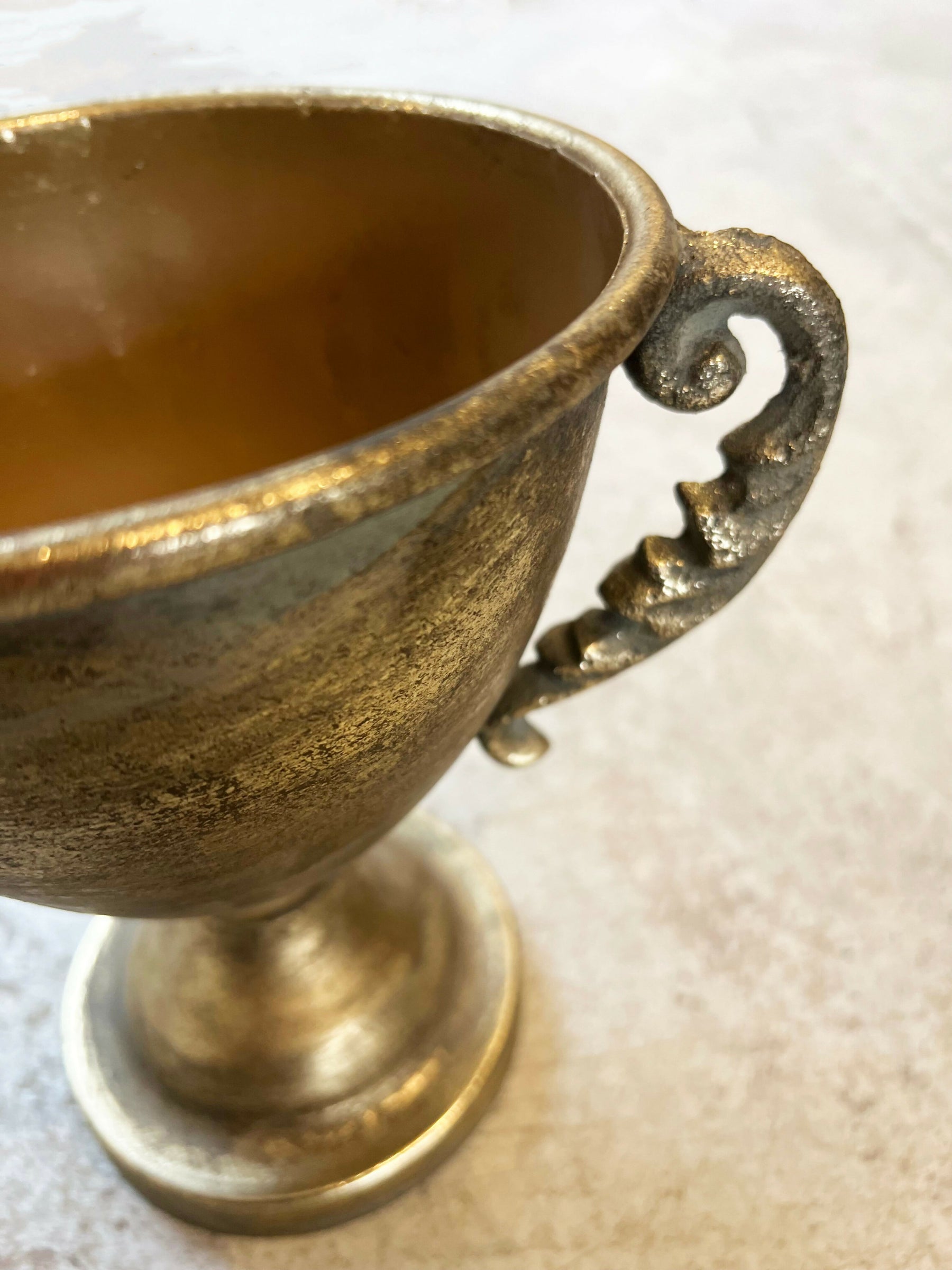 Este copón metálico en color oro envejecido es perfecto para eventos especiales. Fabricado con materiales de alta calidad, su diseño clásico y elegante añadirá un toque de distinción a cualquier ocasión. Además, su resistencia garantiza su durabilidad en el tiempo, convirtiéndolo en una excelente inversión.