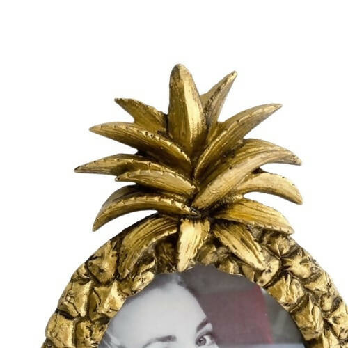 Marco de fotos en forma ovalada con diseño de piña en tono dorado. Añade un toque tropical y divertido a la presentación de tus fotografías.