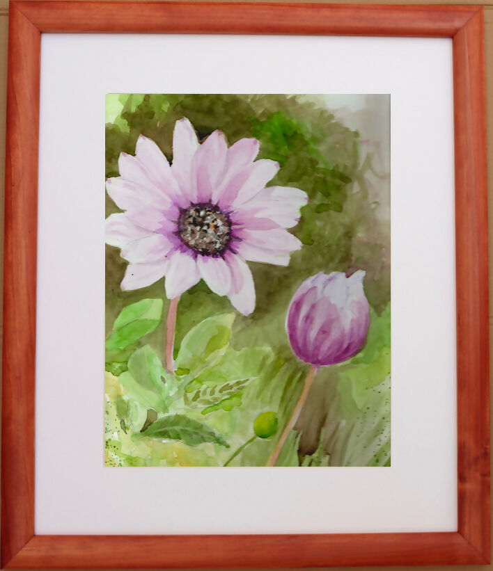 Acuarela original pintada por Ana María Quintana, en papel de alto gramaje para acuarela, enmarcada en marco de madera color alerce, tamaño lámina: 27x35 cms, tamaño con marco: 44x51 cms