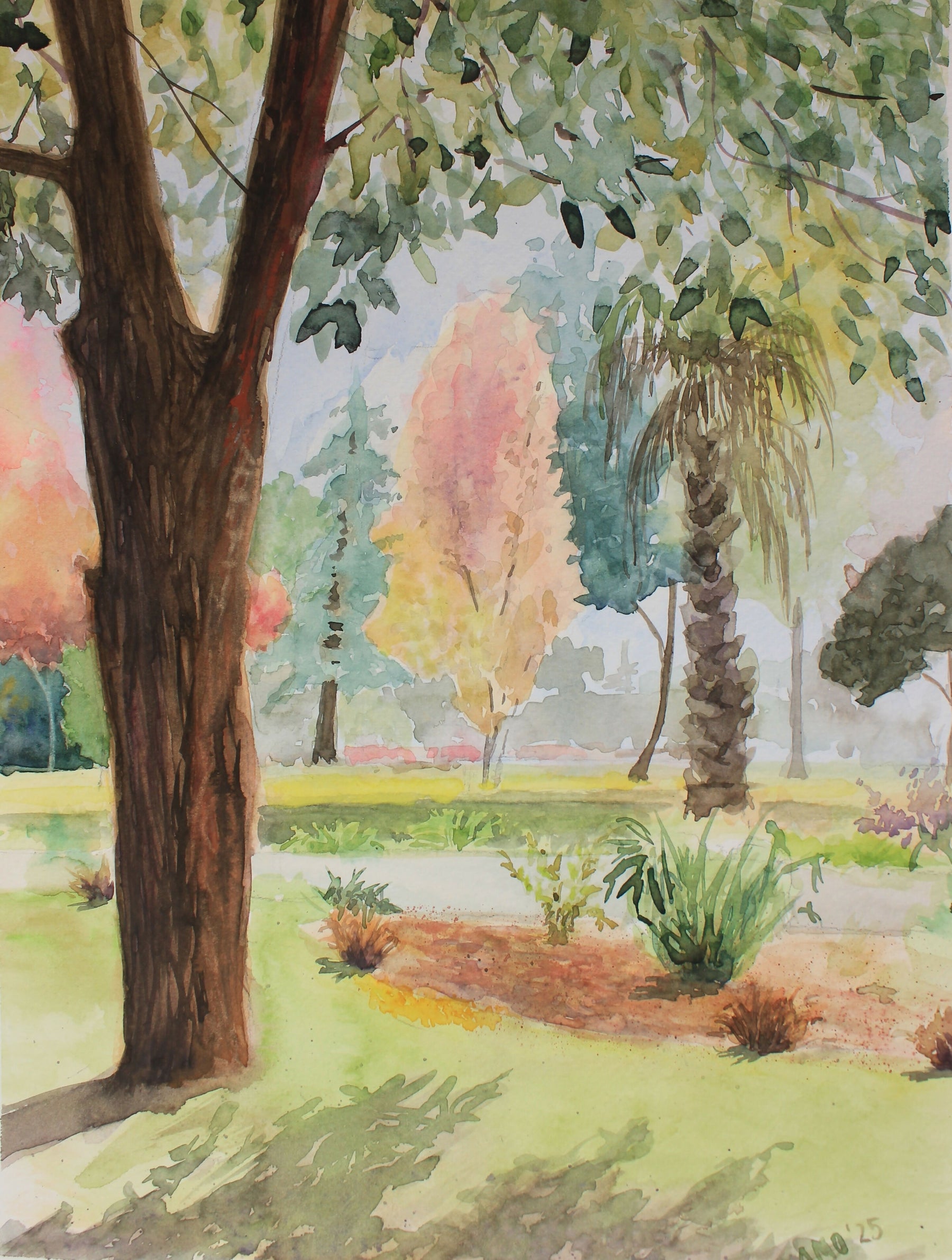 Acuarela original pintada por Ana María Quintana, en papel de alto gramaje para acuarela, enmarcada en marco de madera pintado al albayalde, tamaño lámina: 27x35 cms, tamaño con marco: 54x46 cms.