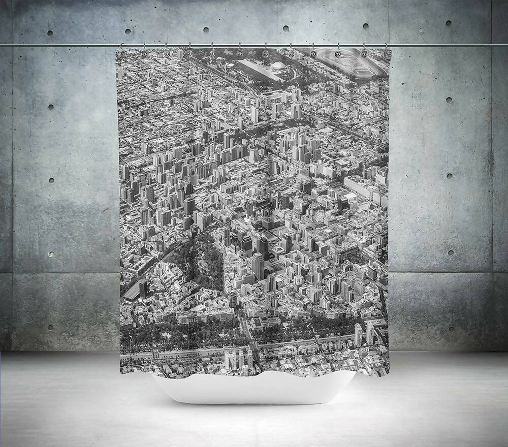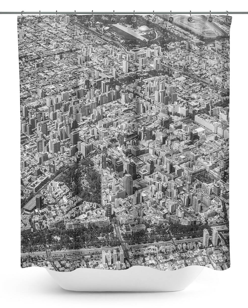Transforma tu baño en un espacio moderno y sofisticado con la cortina de baño Santiago. Su diseño único, con una impresionante vista aérea de la ciudad, aporta un toque urbano y elegante a tu decoración.