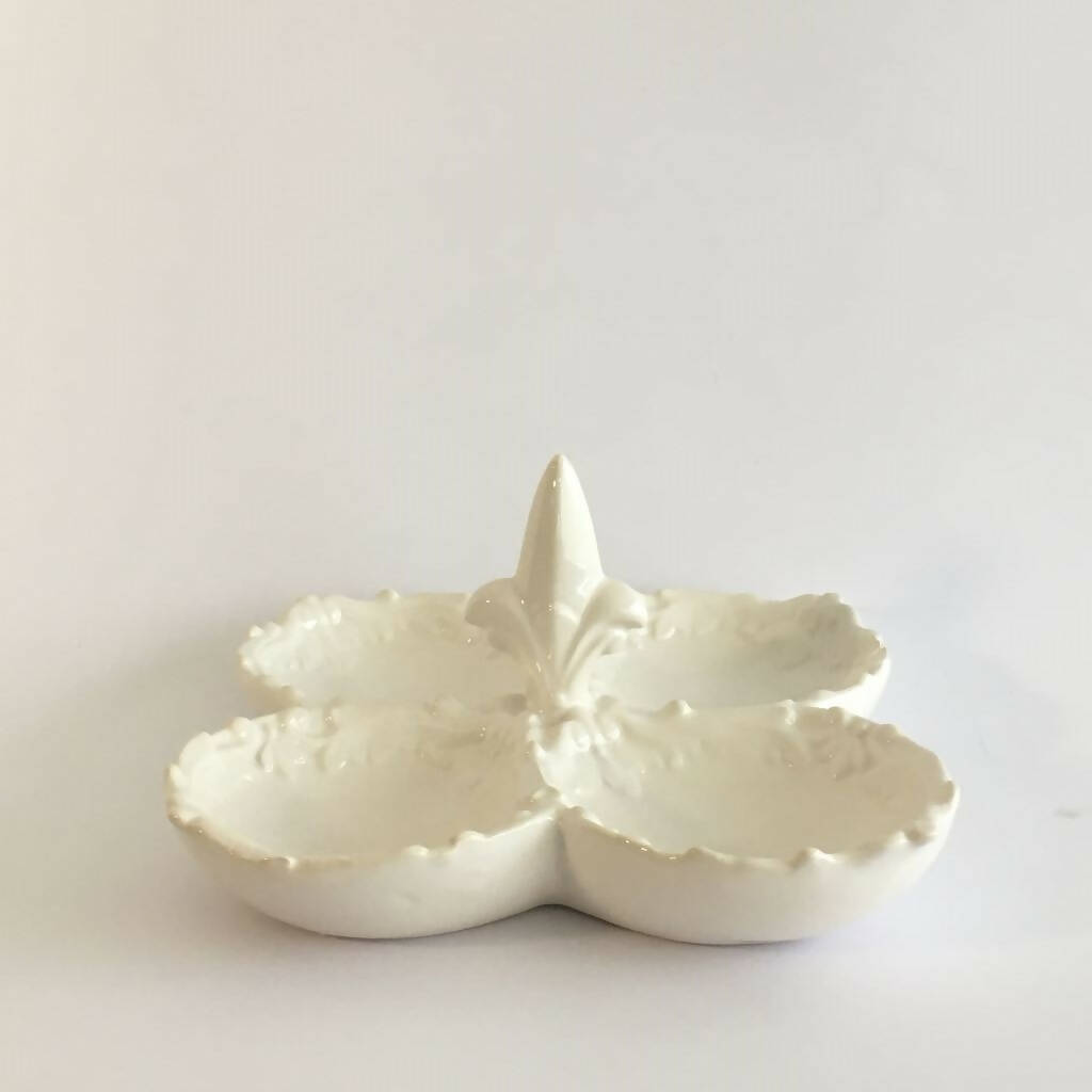 Un pequeño y encantador plato de cerámica diseñado específicamente para servir cocktails y aperitivos con elegancia y originalidad.