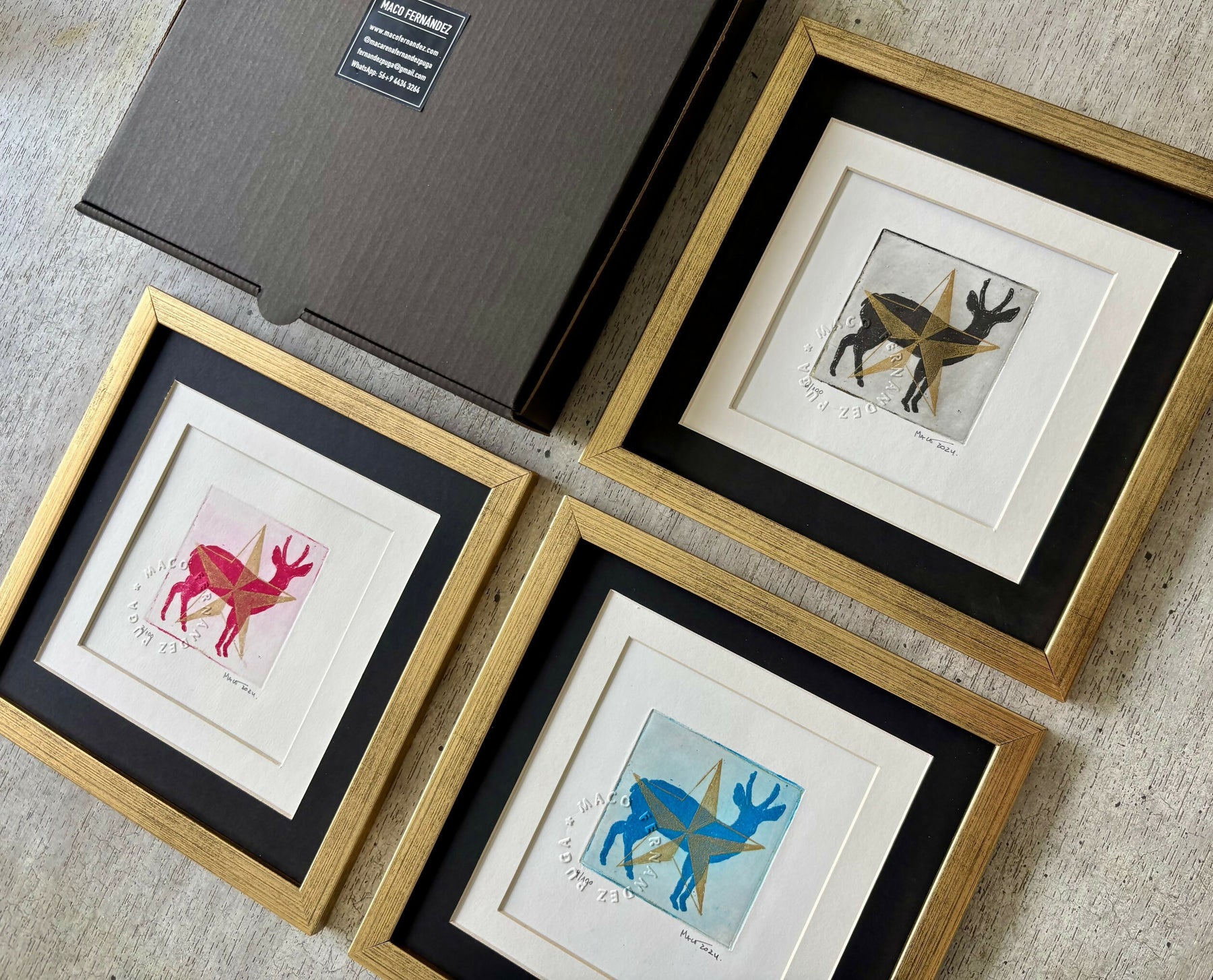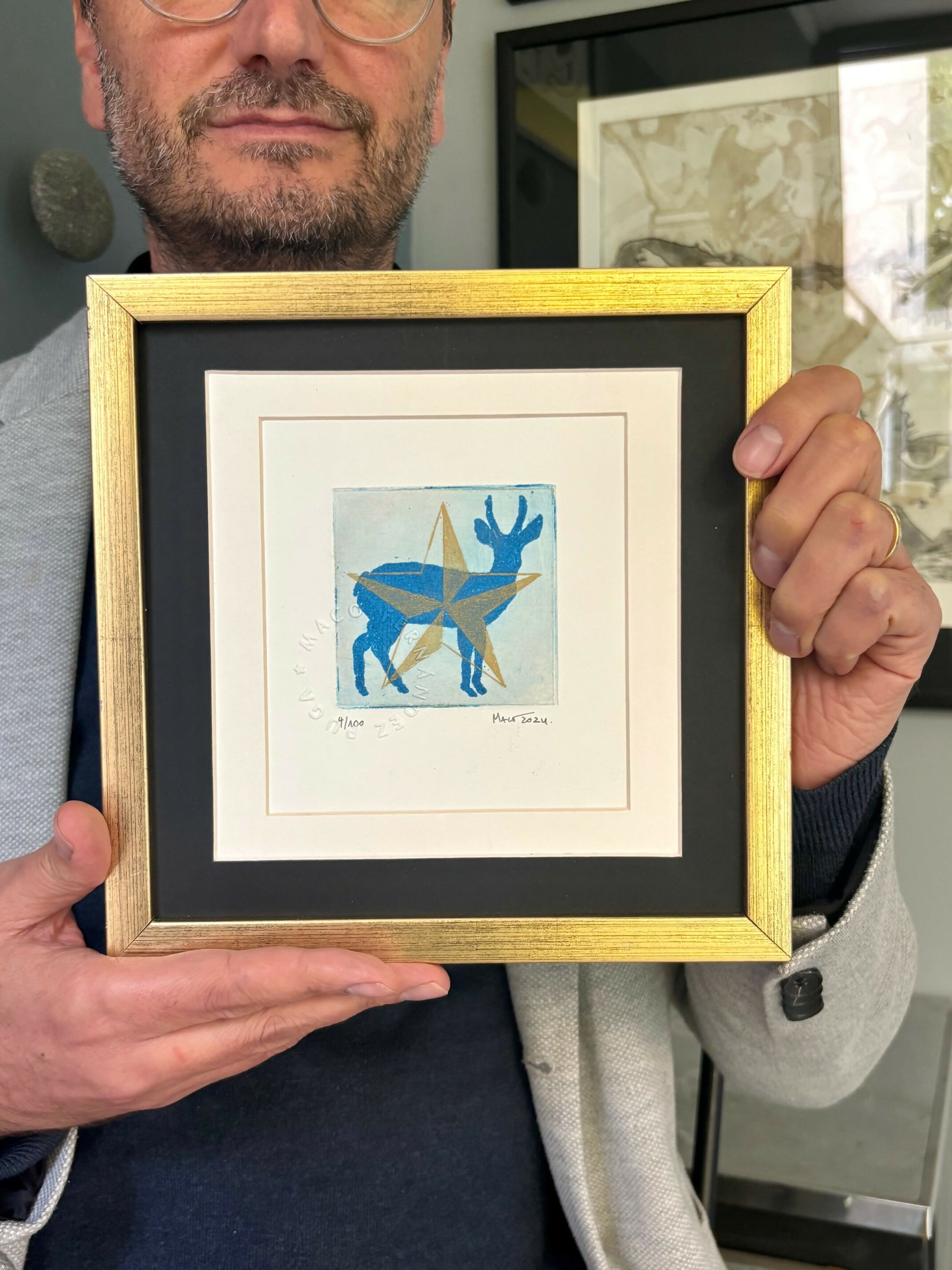 "Un huemul azul y una estrella dorada: símbolos de Chile en una obra pequeña, con carácter y sentido. Ideal para ese rincón especial o para regalar con historia."