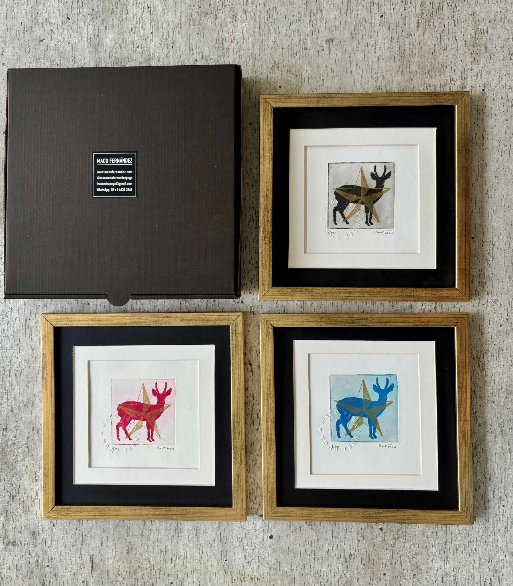 "Huemul y estrella: una obra delicada, con brillo dorado y sentido andino. Ideal para regalar y entregar un toque de arte cualquier espacio."