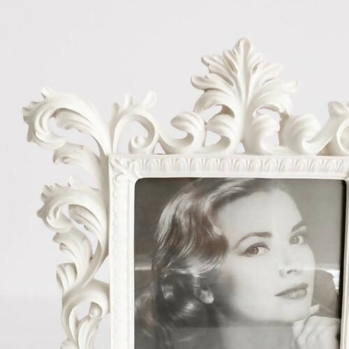 Imponente marco de fotos vintage con diseño de ramas color blanco. De un tamaño importante (medidas: 38 cm alto y 29 cm ancho). Permite colocar fotos de 23,5 x 18,5 cm. Es un elemento decorativo que puede ser usado en un Living o Estar de la casa o departamento. Funcionalidad: Objeto Decorativo.