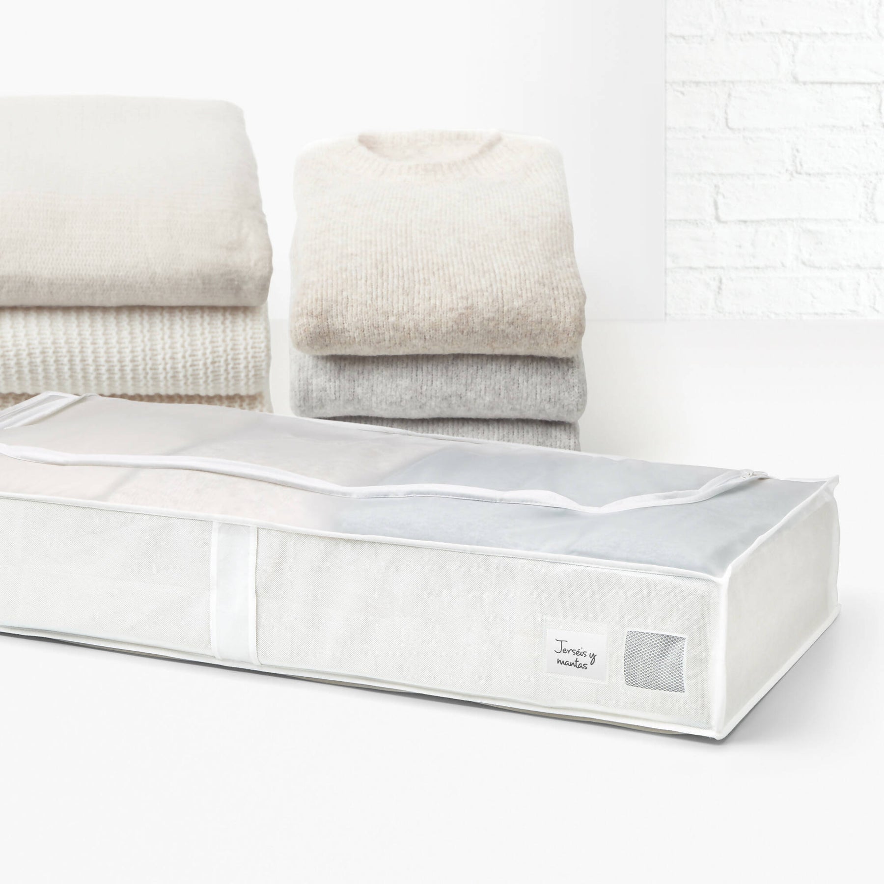 Funda multiuso. Calidad Medium. Ideal para guardar ropa fuera temporada o sabanas o mantas de cama. Tela transpirable. Medidas: 45 x 103 x 16 cms.