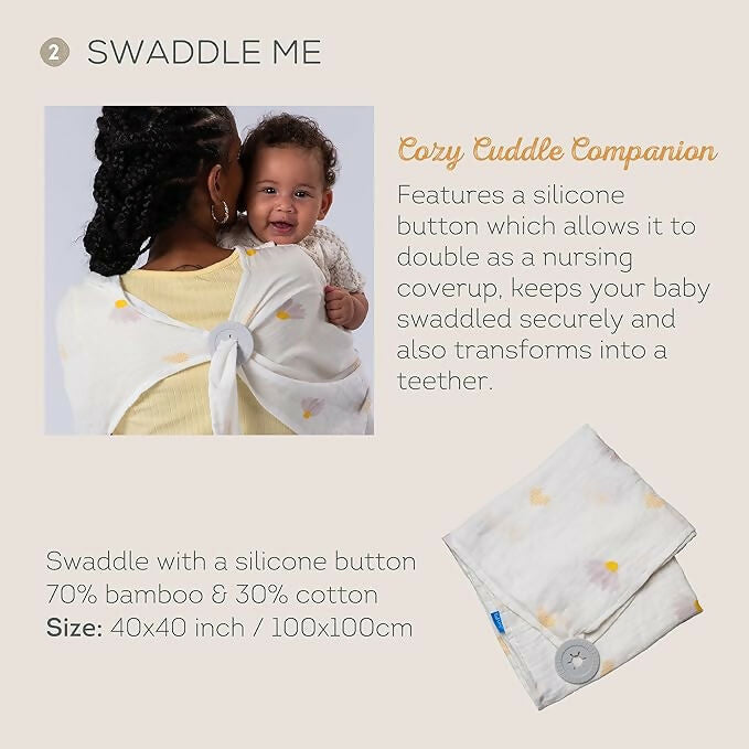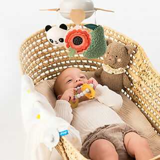| Newborn Luxe es un regalo ideal para cualquier bebé. Esta lujosa caja de regalo contiene todo lo necesario para un sueño tranquilo y el desarrollo de los sentidos de un niño pequeño. Un carrusel musical colgante con 22 minutos de melodías relajantes ayuda a los niños a relajarse, mientras que un osito de peluche y un mordedor de silicona estimulan la motricidad fina y los sentidos. El pañal textil con el original botón de silicona es una gran ayuda para envolver al bebé o como discreta manta para amamantar. Esta caja de regalo no sólo calma, sino que también favorece el desarrollo de la inteligencia emocional y la motricidad del niño. |