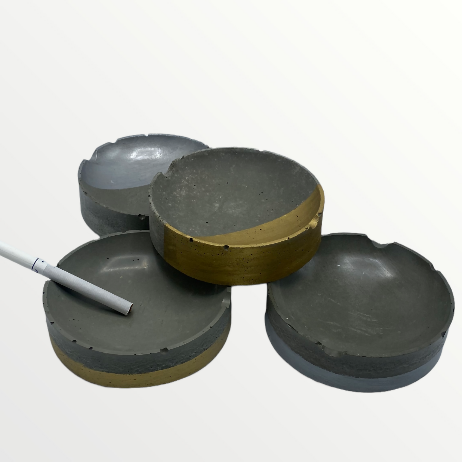 Fumador o no, que no falte un cenicero en tu casa. no improvises y ten un cenicero de hormigón con estilo. Elige tu favorito oro o plata distintos dieños.
