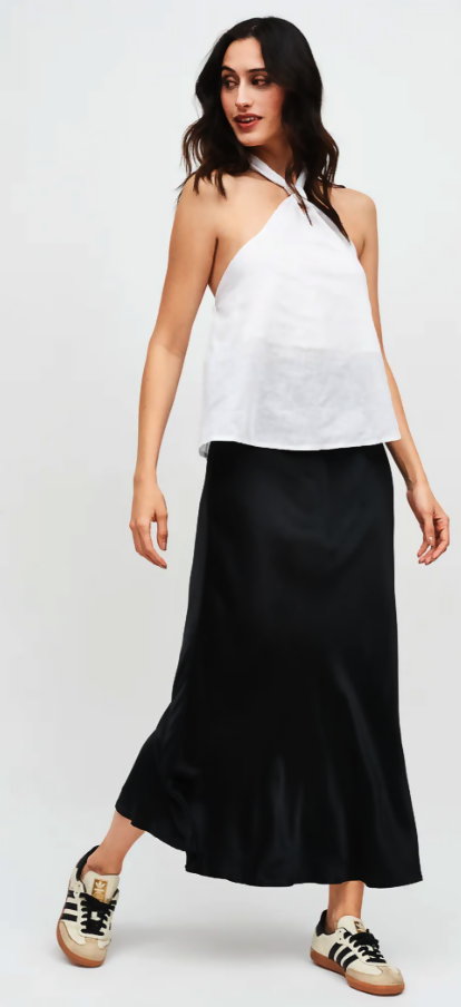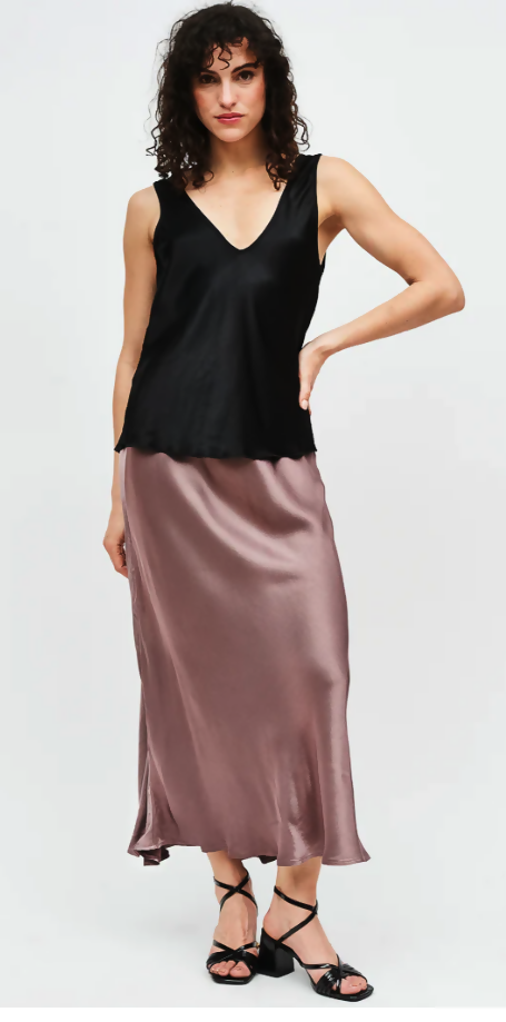 Falda largo medio de viscosa italiana, con pretina elasticada.