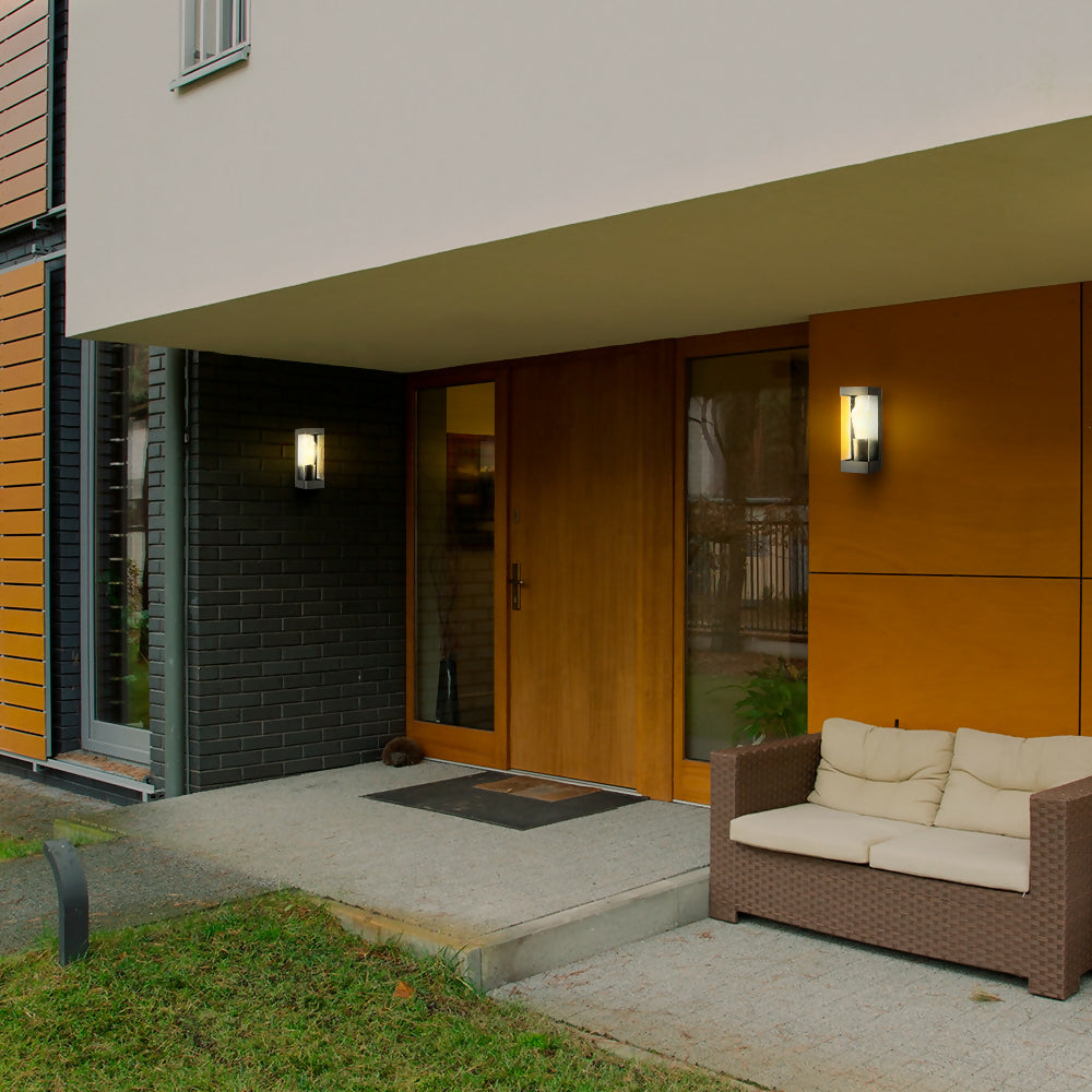 Aplique unidireccional de estilo contemporáneo, ideal para iluminar terrazas o fachadas bajo alero.