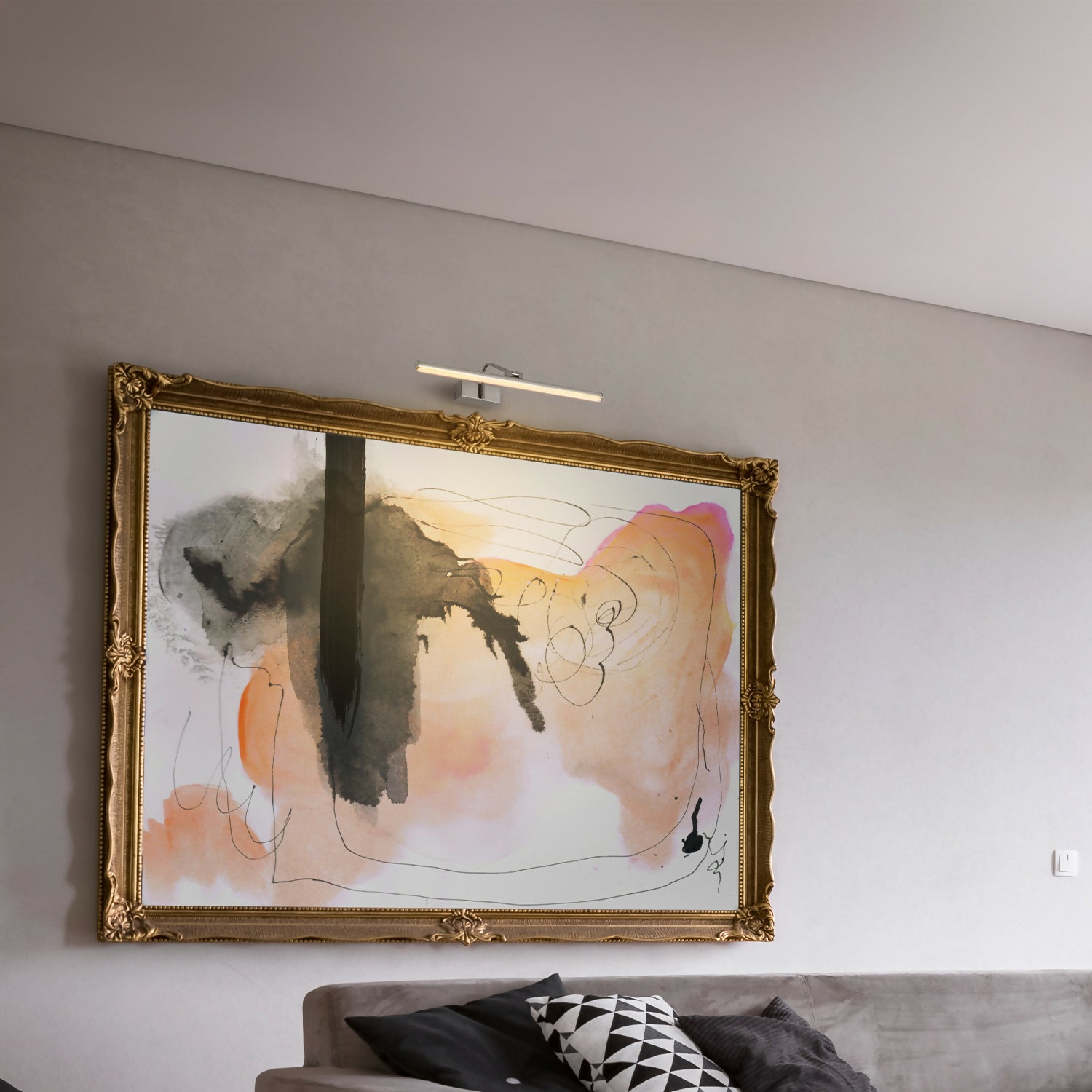 Aplique LED 9W 3000K 560LM para cuadro, acero pulido. su ancho es de 45cm
