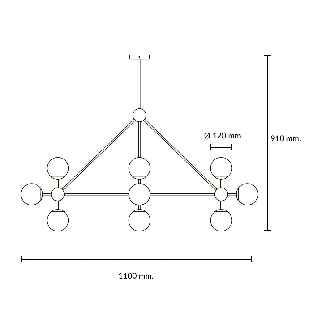 Lámpara de colgar 10 luces modelo tagalo, base E27, color negro, no incluye ampolleta