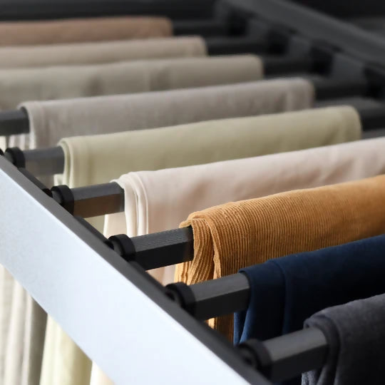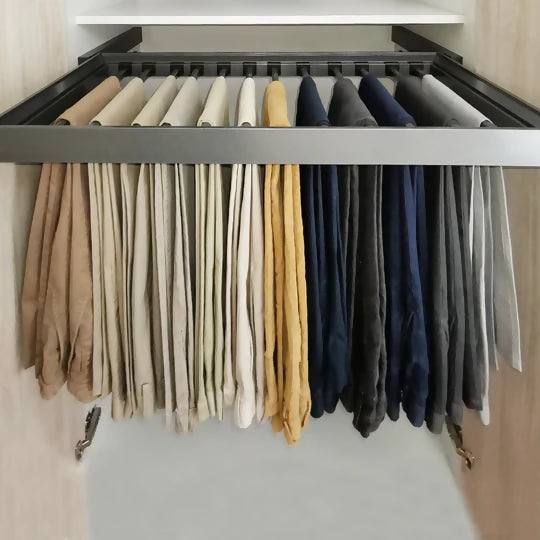Deja tus pantalones ordenados y visibles 💫 con este pantalonero de barras extraíbles.