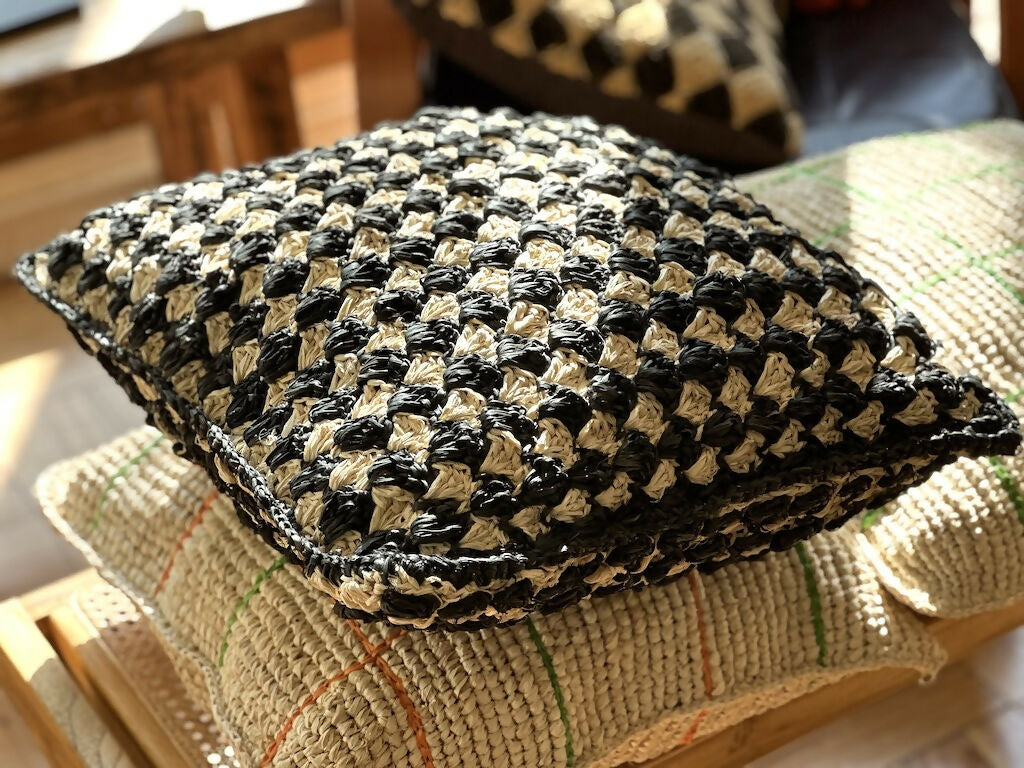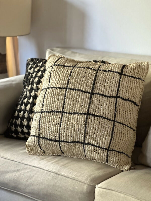 Añade un toque de distinción a tu hogar con el Cojín Raffia Pied de Poule. ¡No esperes más y adquiérelo ahora!