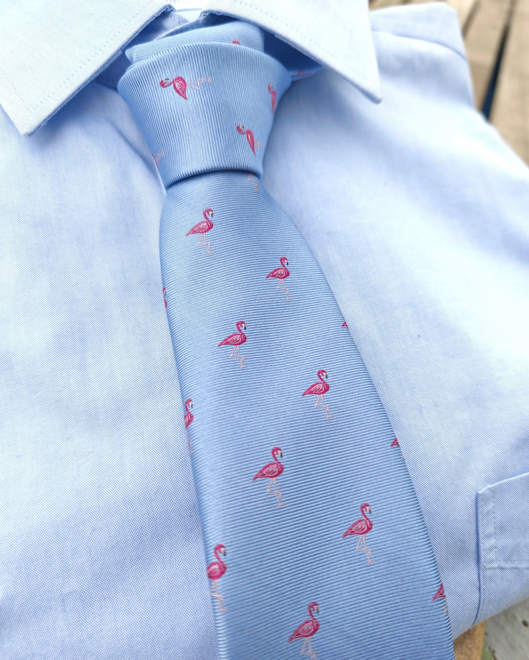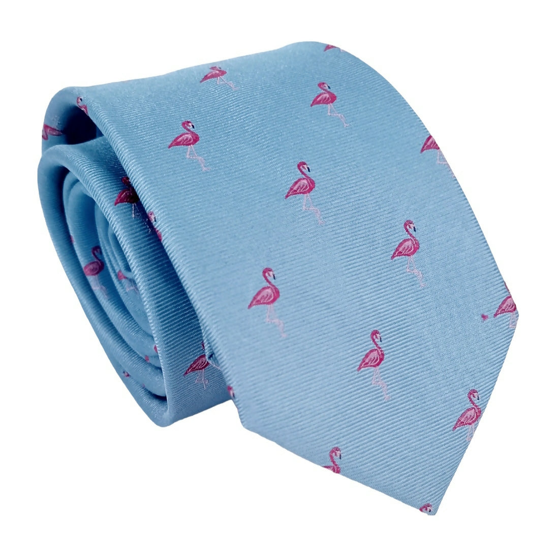 Corbata celeste / flamencos fucsia