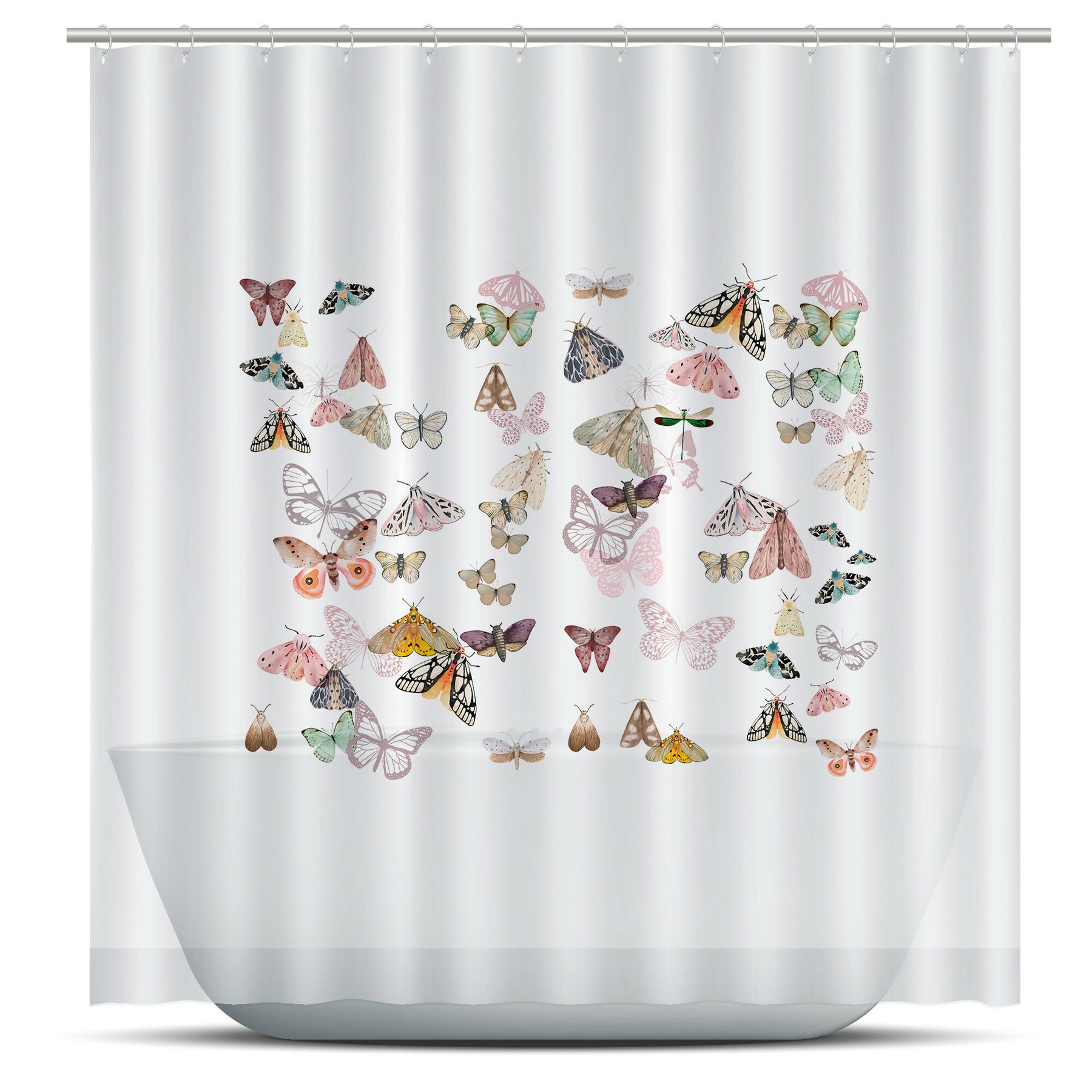 Cortina de Baño Butterflies de organza, tela de tejido fino semi-transparente 180 x 180 cm. Parte superior reforzada con 12 ojales.