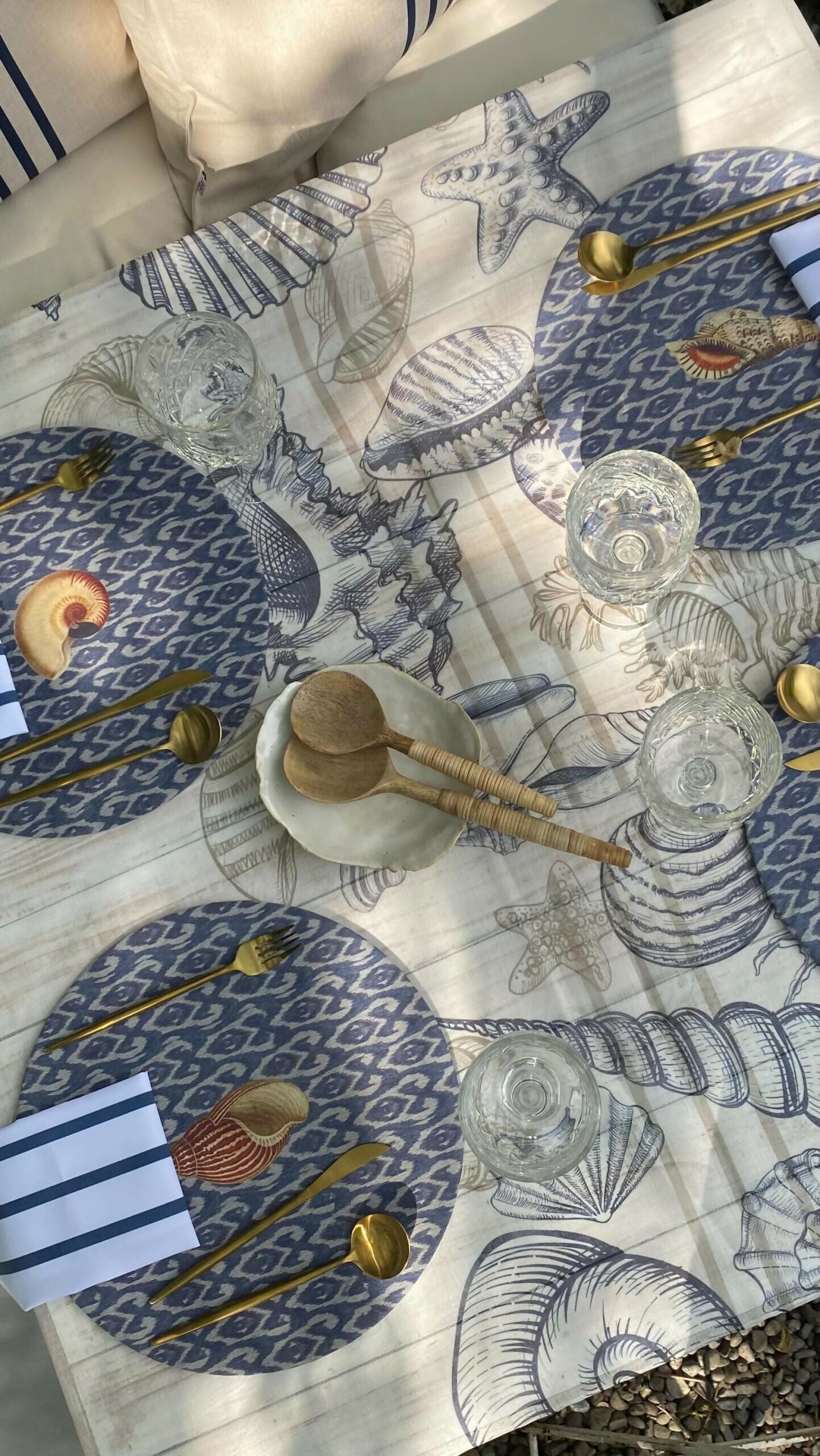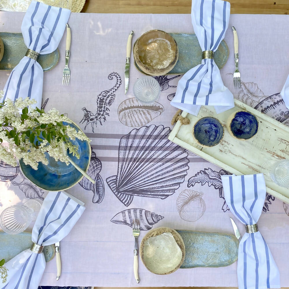 Secreto para tener tu Mantel Bahía Azúl siempre impecable: Llena un balde hasta la mitad con agua tibia, agrega unas cucharadas de bicarbonato y un chorrito de detergente para platos. Deja tus manteles en remojo por una hora (también puedes hacerlo de un día para el otro). Lavadora en ciclo corto, y listo!