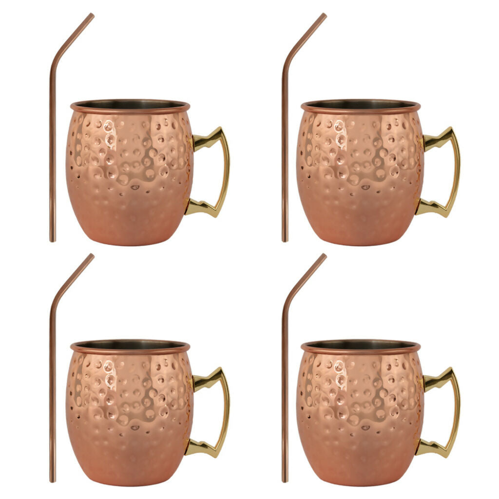 Set 4 Vasos Moscow Mule Mug Cobre + Bombillas Simplit