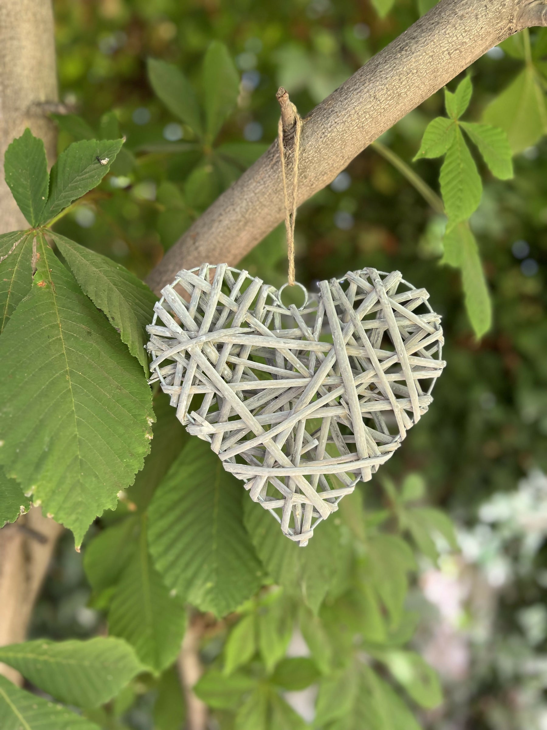 El corazón está fabricado con mimbre, lo que le da un aspecto orgánico y texturizado. La fibra natural es duradera y resistente, asegurando la calidad y longevidad del corazón.