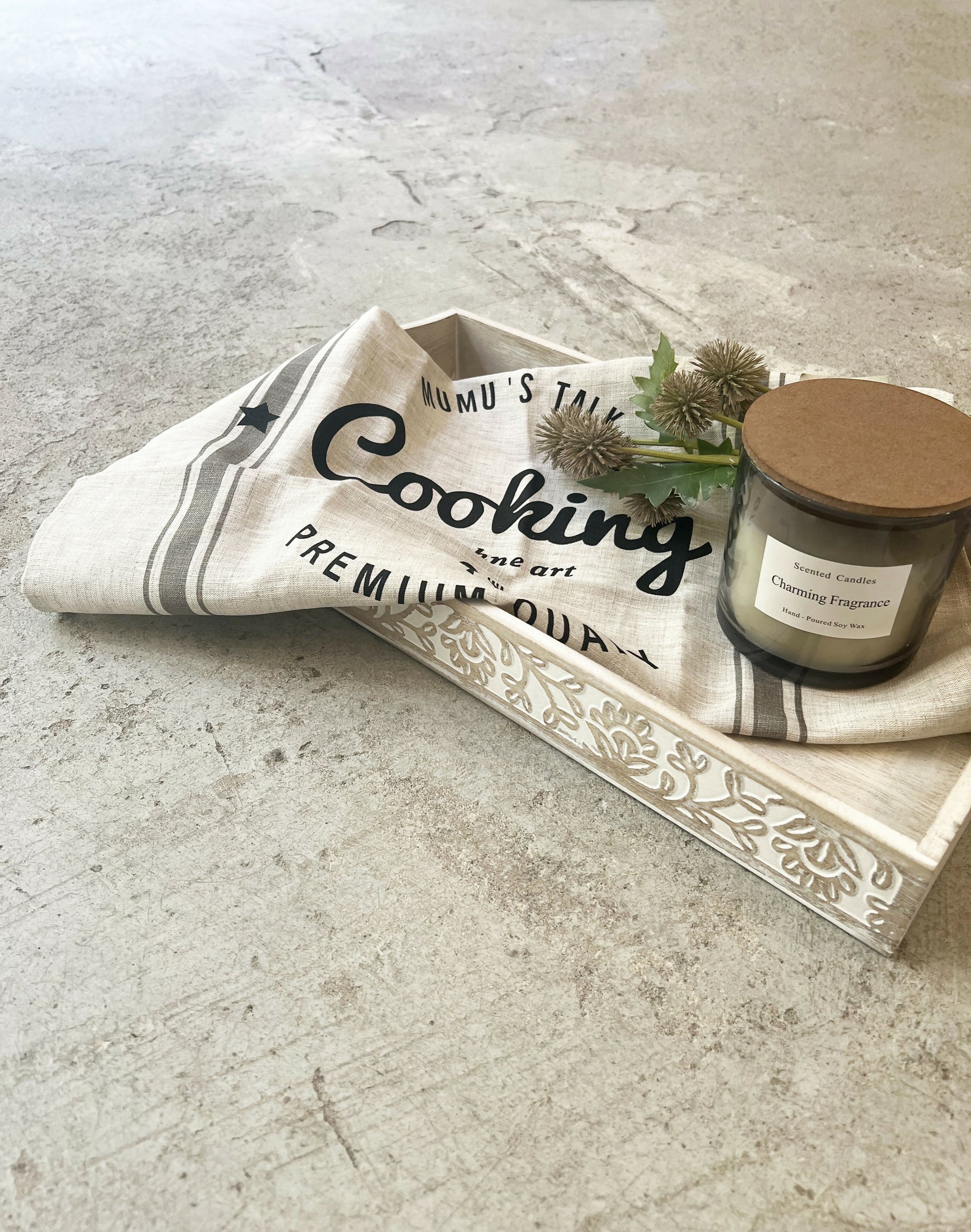 Paño de cocina Cooking de lino sintético en color natural con letras negras es un accesorio práctico y con un diseño moderno, ideal para añadir un toque de estilo rústico y funcionalidad a tu cocina. Este tipo de paño no solo es útil para secar platos o limpiar superficies, sino que también puede servir como un detalle decorativo que resalta en una cocina.