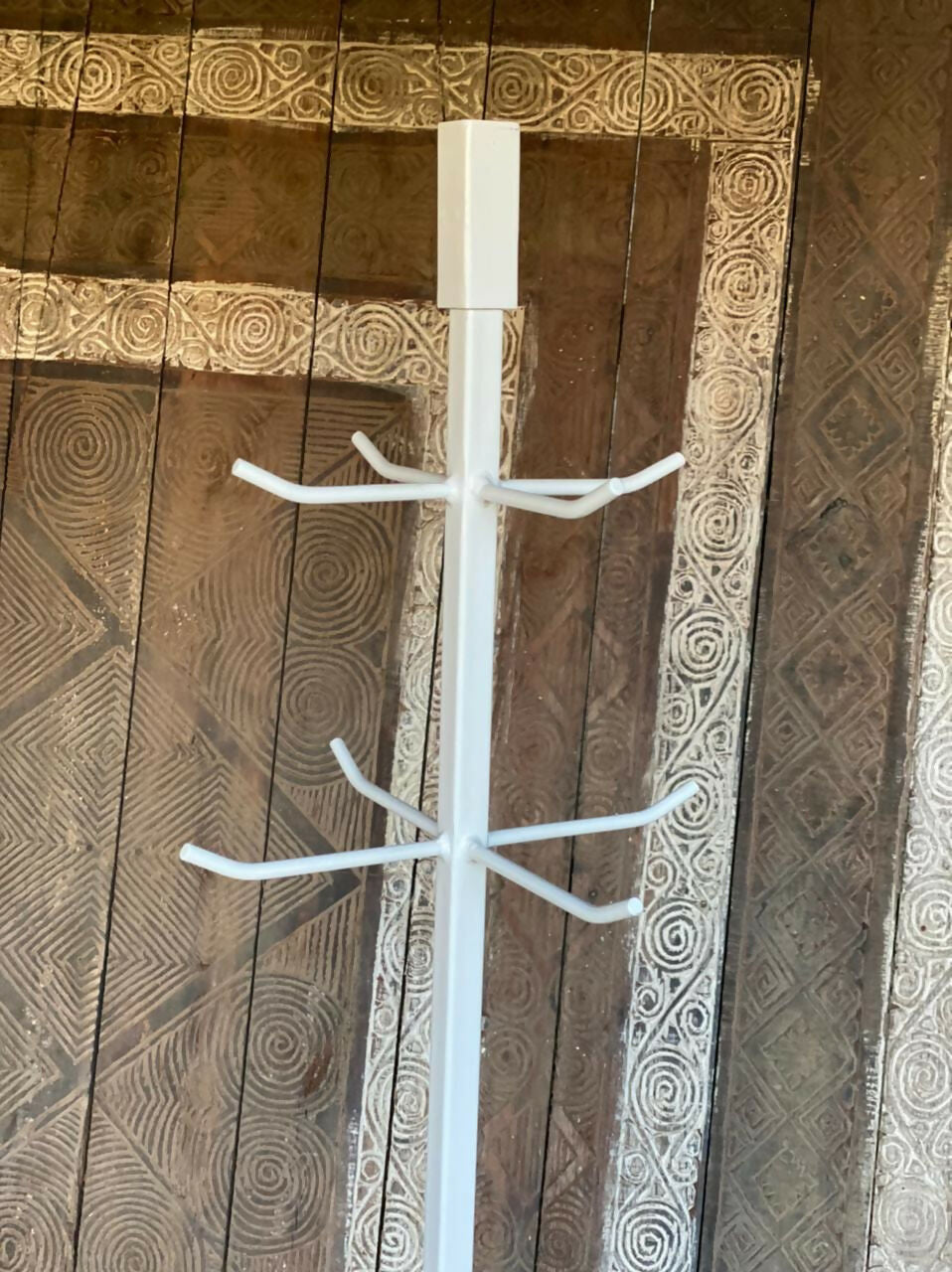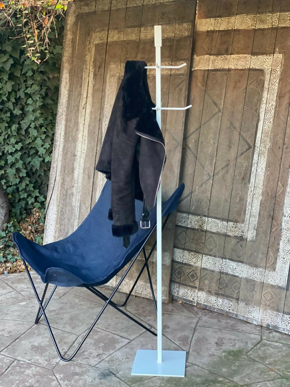 El perchero de fierro pintado en color blanco es una opción elegante y funcional para colgar tus prendas en tu hogar u oficina.