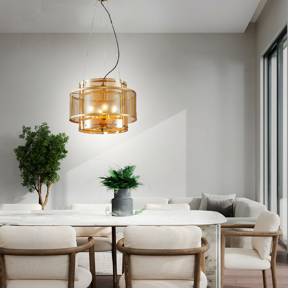 Lámpara Colgante Cosio Oro Mate ideal para espacios modernos, para resaltar el comedor y generar más luminosidad. Altura regulable.