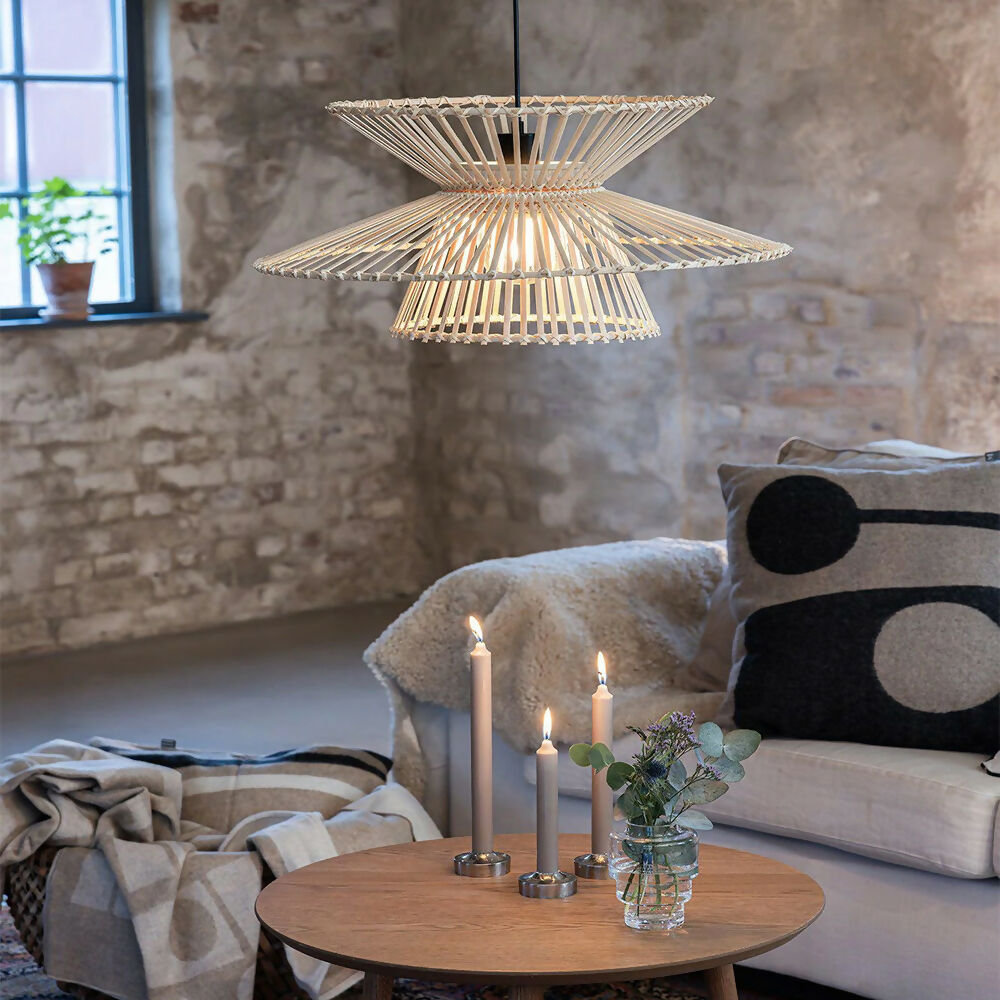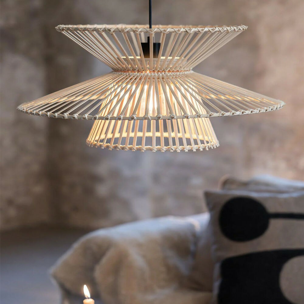 Lámpara de colgar, tipo rústica, con pantalla de bambú en color negro
