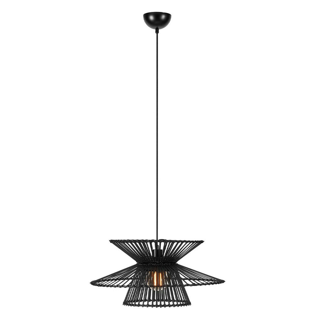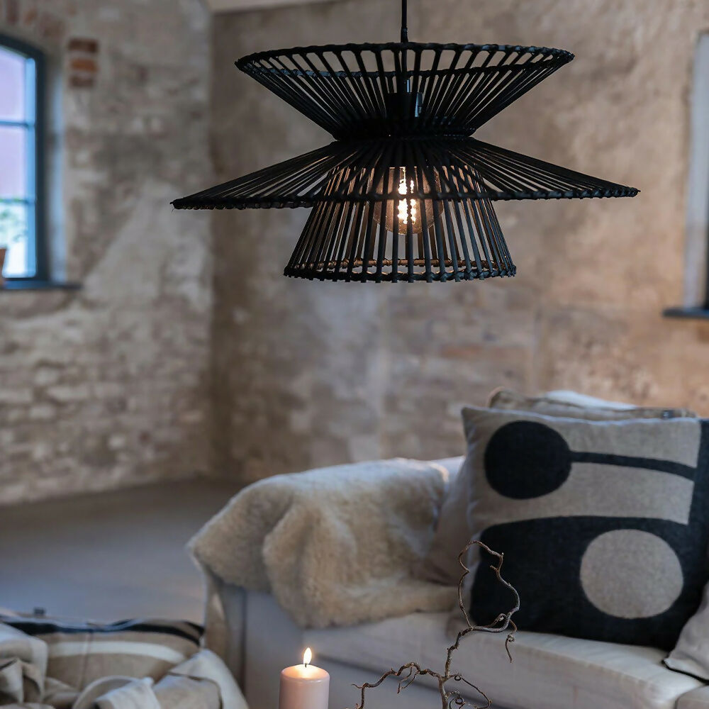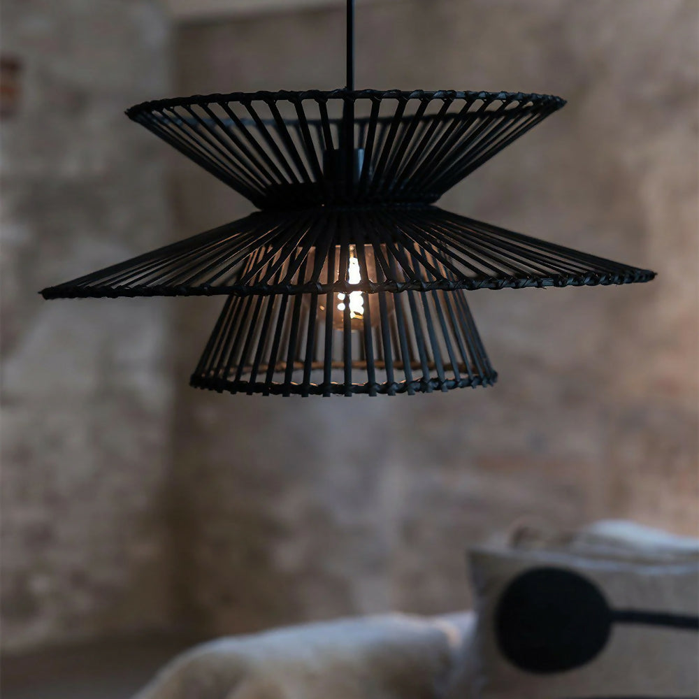 Lámpara de colgar, tipo rústica, con pantalla de bambú en color negro