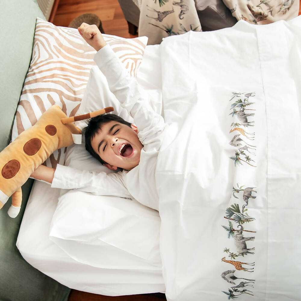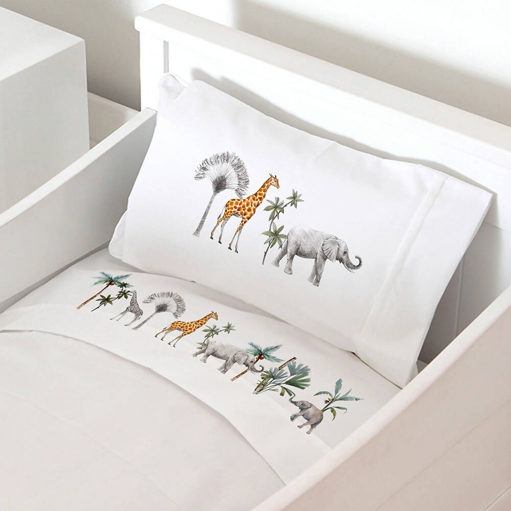 Juego de Sábanas Africa 100% Algodón 200 hilos MEDIDAS COLCHÓN: Colecho 80 x 50 cm. Incluye bajera elasticada 50x80x15 cm., encimera 90×110 cm. y funda de almohada de 40 x 25 cm. Cuna 140 x 70 cm. Incluye bajera elasticada 70x140x15 cm., encimera 120×160 cm., y funda de almohada de 50 x 30 cm. Pack & Play 100 x 70 cm. Incluye bajera elasticada 70x100x15 cm., encimera 115×120 cm., y funda de almohada de 50 x 30 cm. Transición 150 x 70 cm. Incluye bajera elasticada 70x150x15 cm., encimera 120×180 cm. y funda de almohada de 50 x 30 cm.