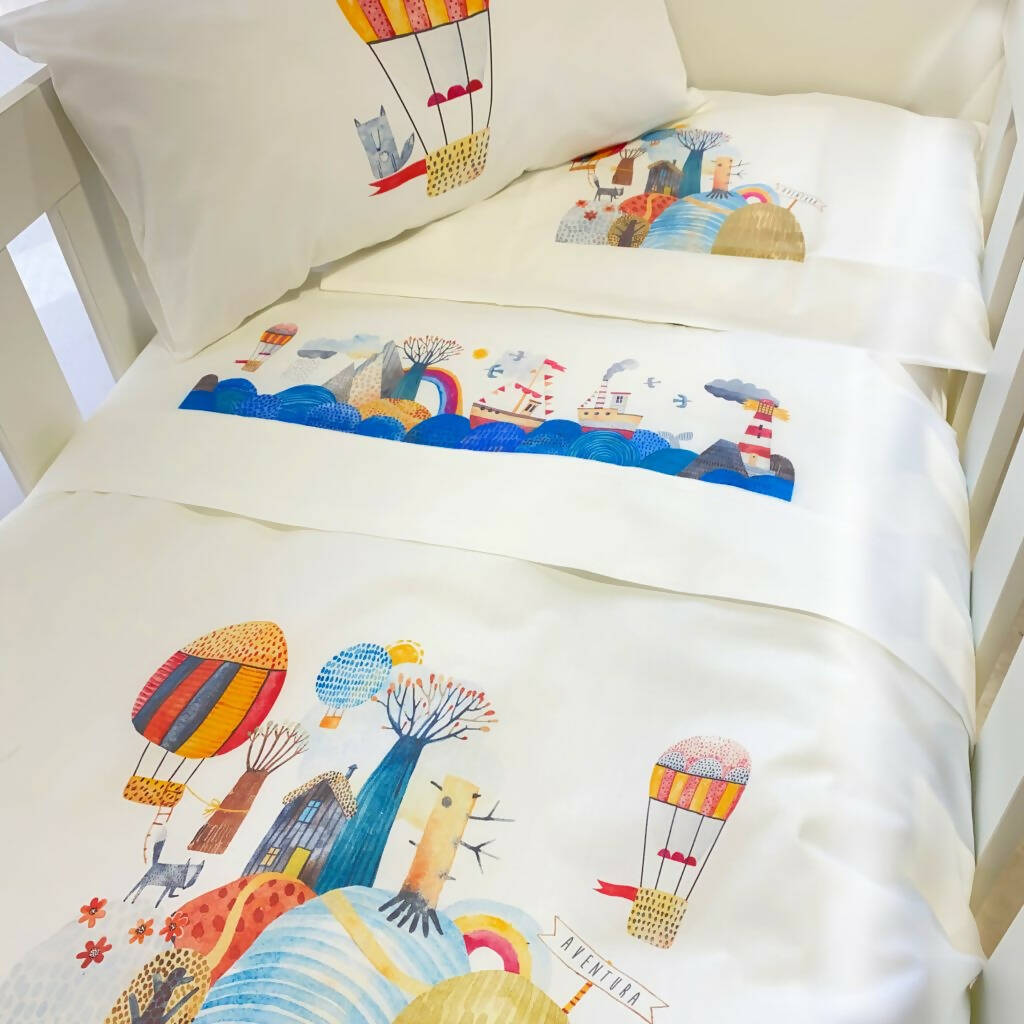 Cuna 140 x 70 cm. Incluye bajera elasticada 70x140x15 cm., encimera 120×160 cm., y funda de almohada de 50 x 30 cm.