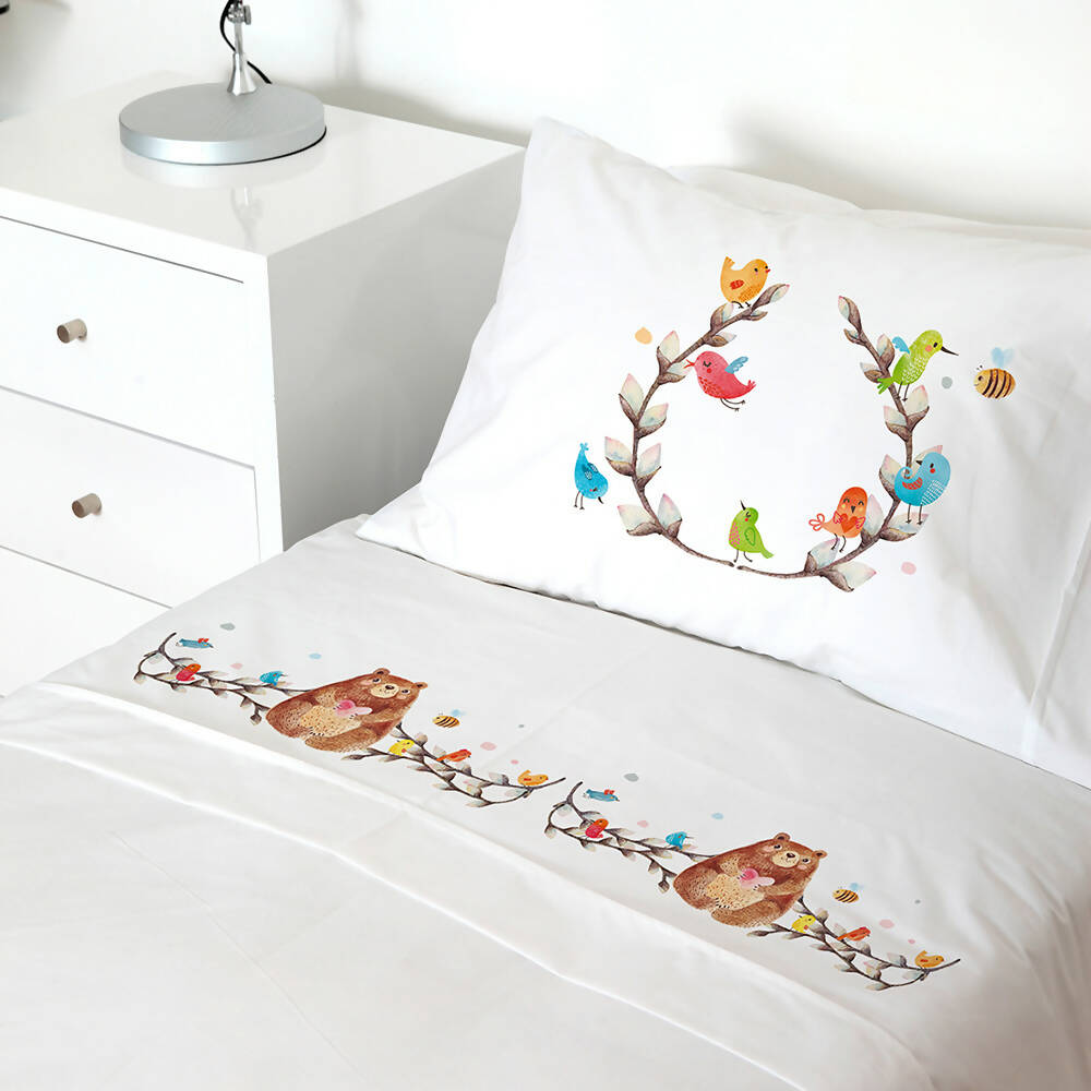 1 plaza: Sábana bajera elásticada 90 x 200 x 30 cm., encimera 160 x 270 cm. y 1 funda de almohada 50 x 70 cm.