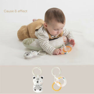 | Una caja completa diseñada para los recién nacidos, que incluye 12 juguetes para el desarrollo desde el nacimiento; optimo para regalar o comprar personalmente Incluye: un espejo seguro para bebé, un peluche león, un cojín para jugar boca abajo, un sonajero, un cachorro de león crujiente, 5 tarjetas de actividades evolutivas de doble cara, 2 tarjeteros, y una guía de desarrollo con consejos sobre cómo utilizar cada juguete del set 0m+: las tarjetas tienen colores de alto contraste, y ayudan al bebé enfocar y desarrollar sus músculos oculares; el espejo permite mejorar la concentración; el cojín permite al bebé jugar boca abajo y fortalecer sus músculos 2m+: el bebé empieza a querer coger cosas, y jugara con el sonajero; coloca los juguetes en el cojín: despertarán la curiosidad y el sentido de descubrimiento del bebé 6m+: los juguetes blandos ayudaran a tranquilizar al bebé; el mordedor es optimo para los primeros dientes, y ayuda a los pequeños a desarrollar la coordinación mano-ojo |