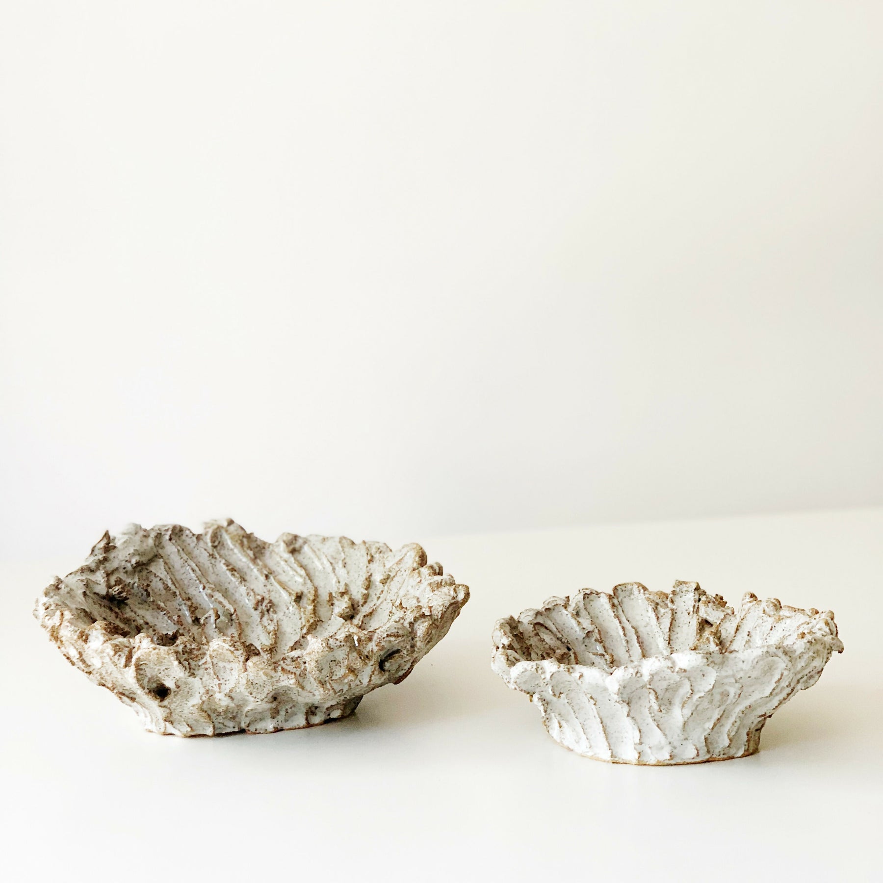 Piezas de cerámica gres modeladas a mano, inspiradas en la belleza imperfecta de la naturaleza. Su textura orgánica y formas irregulares celebran el arte wabi-sabi: lo auténtico, lo único, lo que no se repite. Cada cuenco es una pieza irrepetible que lleva la huella del tiempo y del gesto humano.