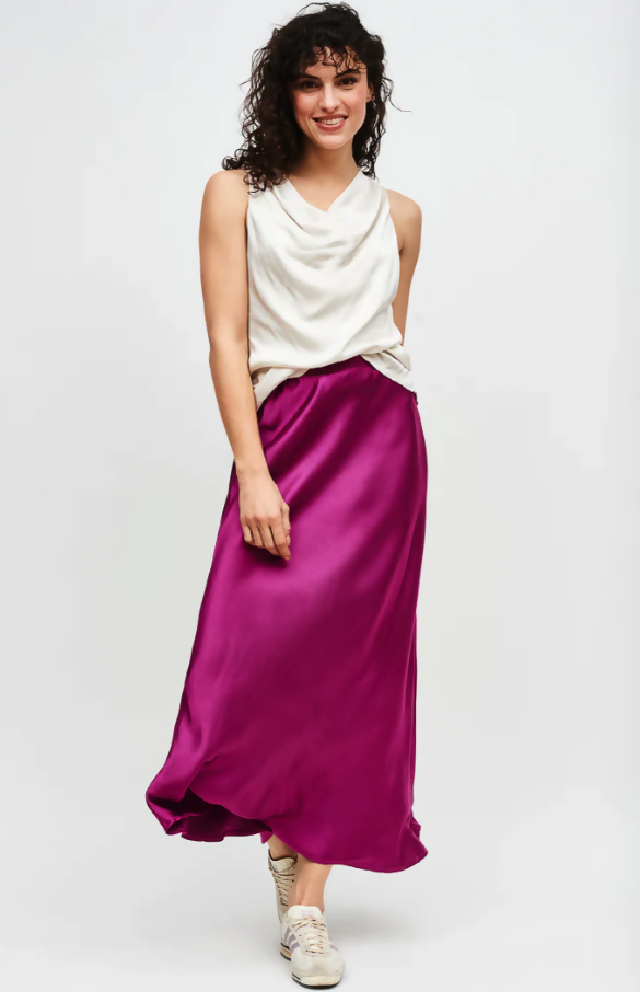 Falda largo medio de viscosa italiana, con pretina elasticada.