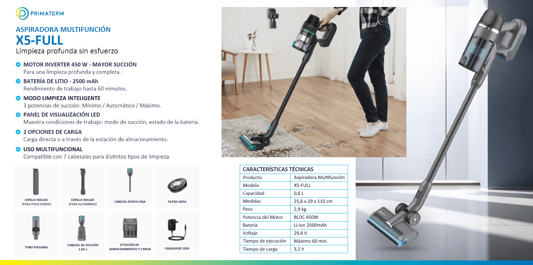 Aspiradora Inalámbrica X5-Full 450w + Accesorios PRIMATERM