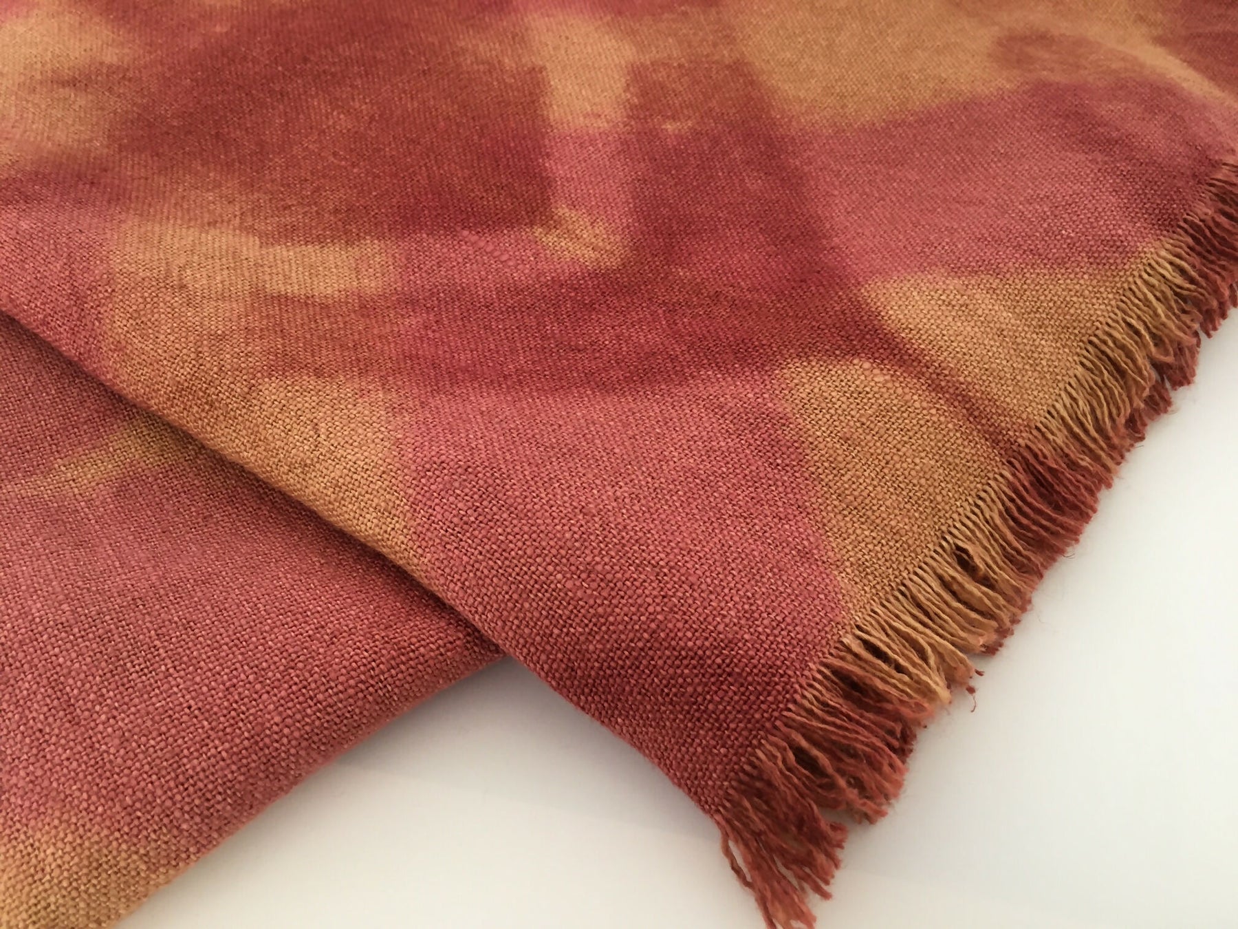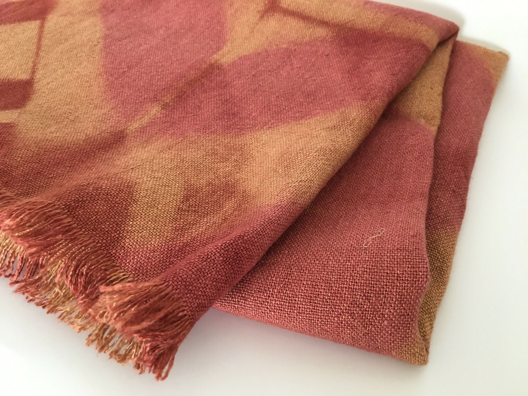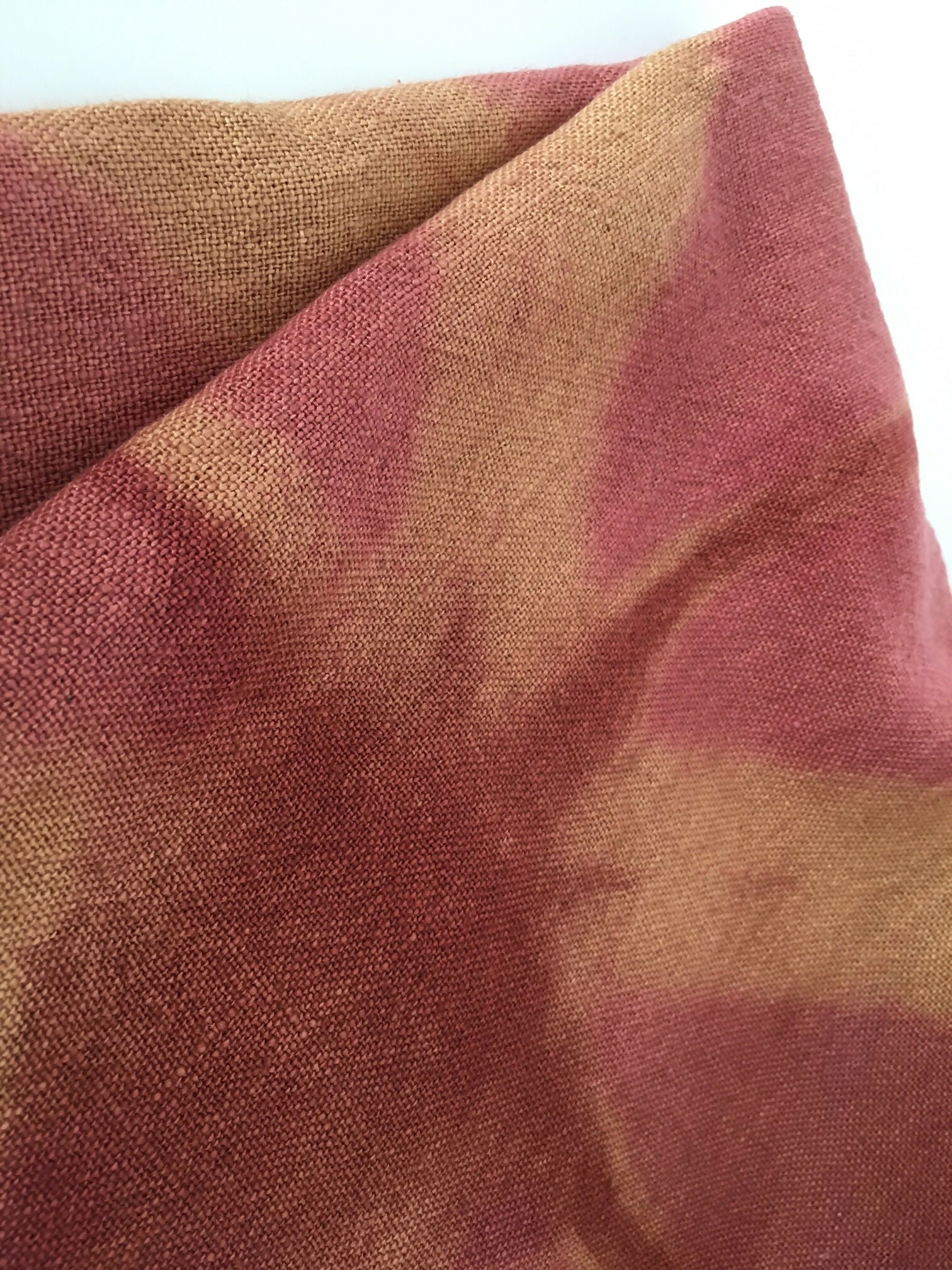 Líneas y franjas gruesas en tonos rosa viejo, burdeos y tostado sobre suave lino rústico 100% natural.