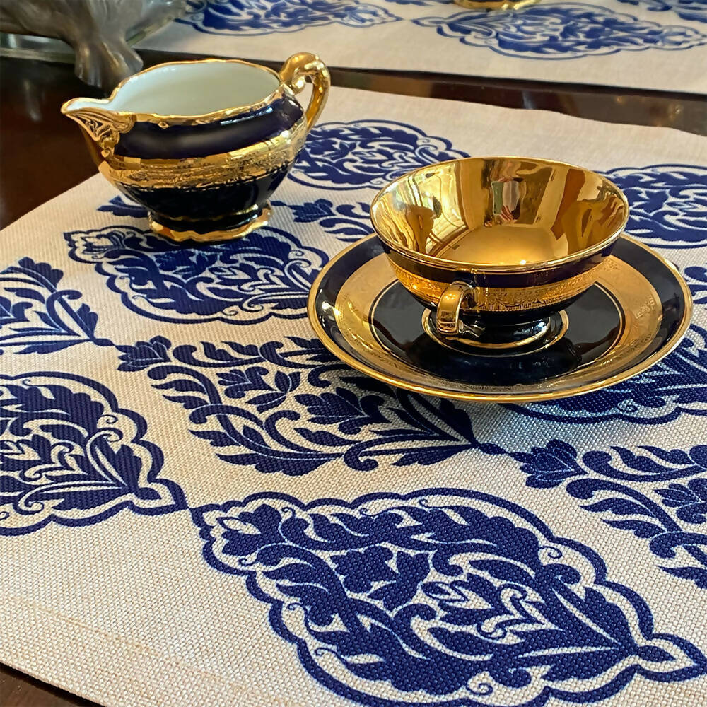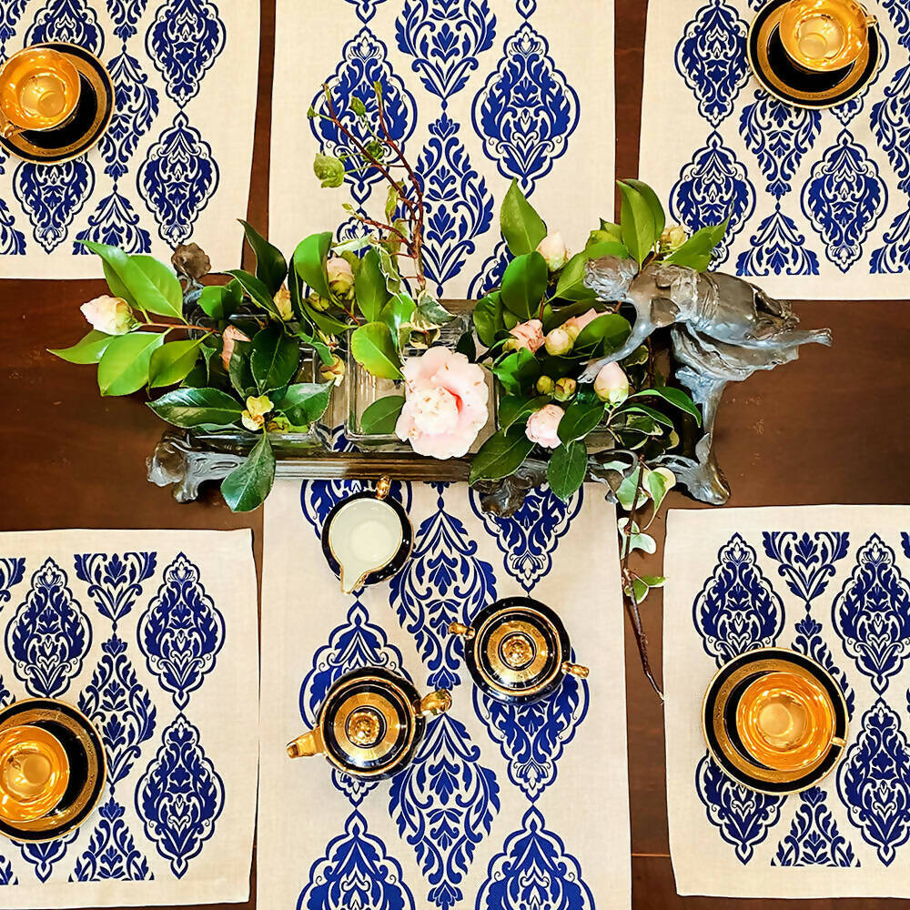 Camino de mesa en linet natural, estampado 150×36 cm.