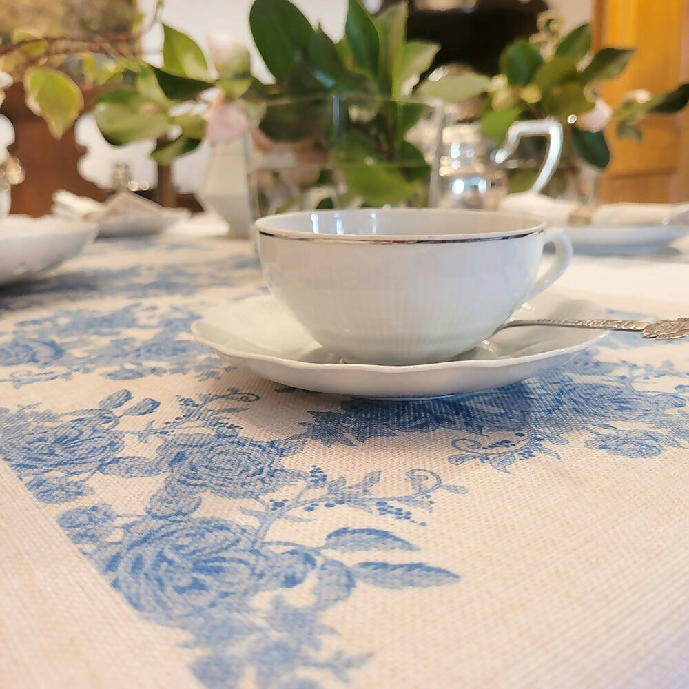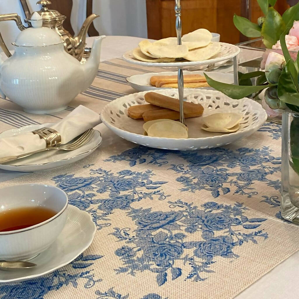 Añade un toque de elegancia francesa a tu mesa con el Camino de Mesa Linet Natural - Frances. Su delicado diseño floral azul sobre un fondo beige natural crea una atmósfera sofisticada y acogedora, ideal para cenas especiales o para el uso diario.