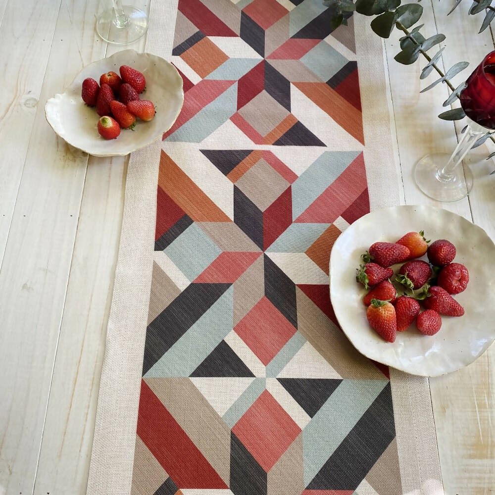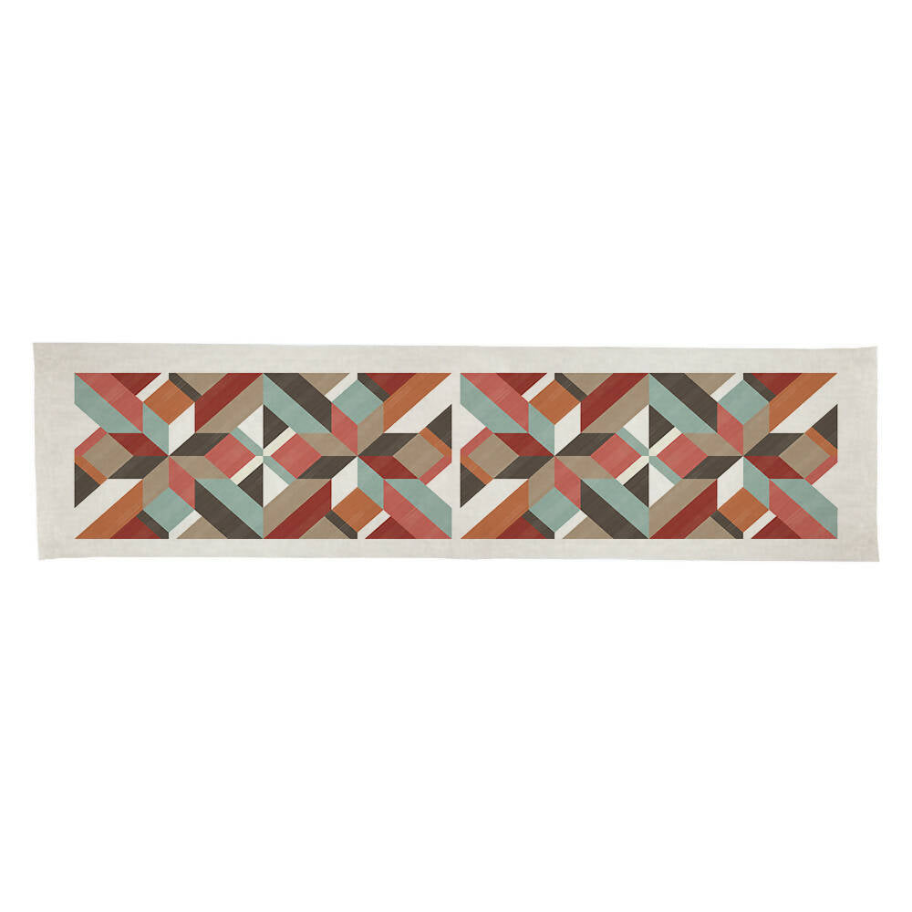 Camino de mesa en linet natural,  estampado 150×36 cm.