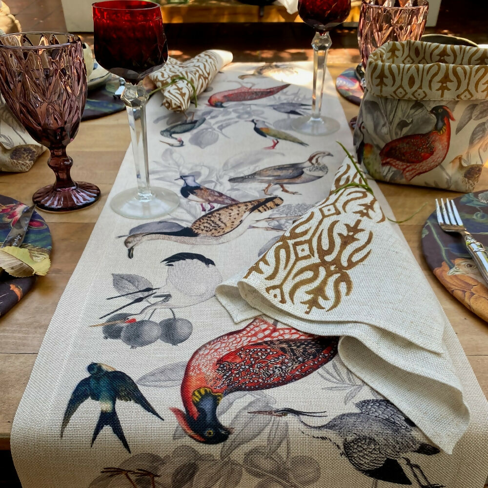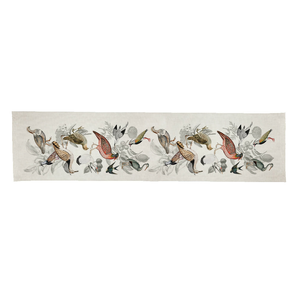 Camino de mesa en linet natural,  estampado 150×36 cm.