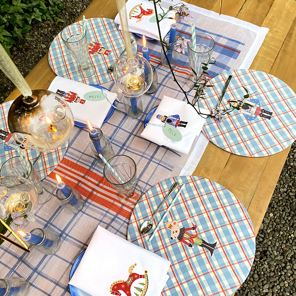 Camino de mesa Cascanueces – Velo Organza (poliéster), estampado.