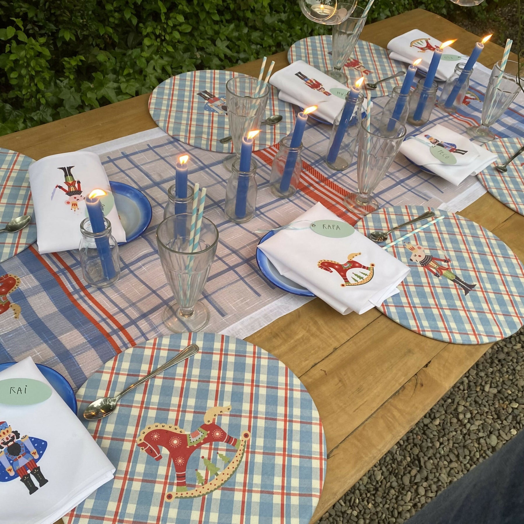 Puedes usarlos de centro de mesa, o bien cruzados marcando los puestos enfrentados, con o sin mantel blanco de base. De cualquier forma te lucirás!