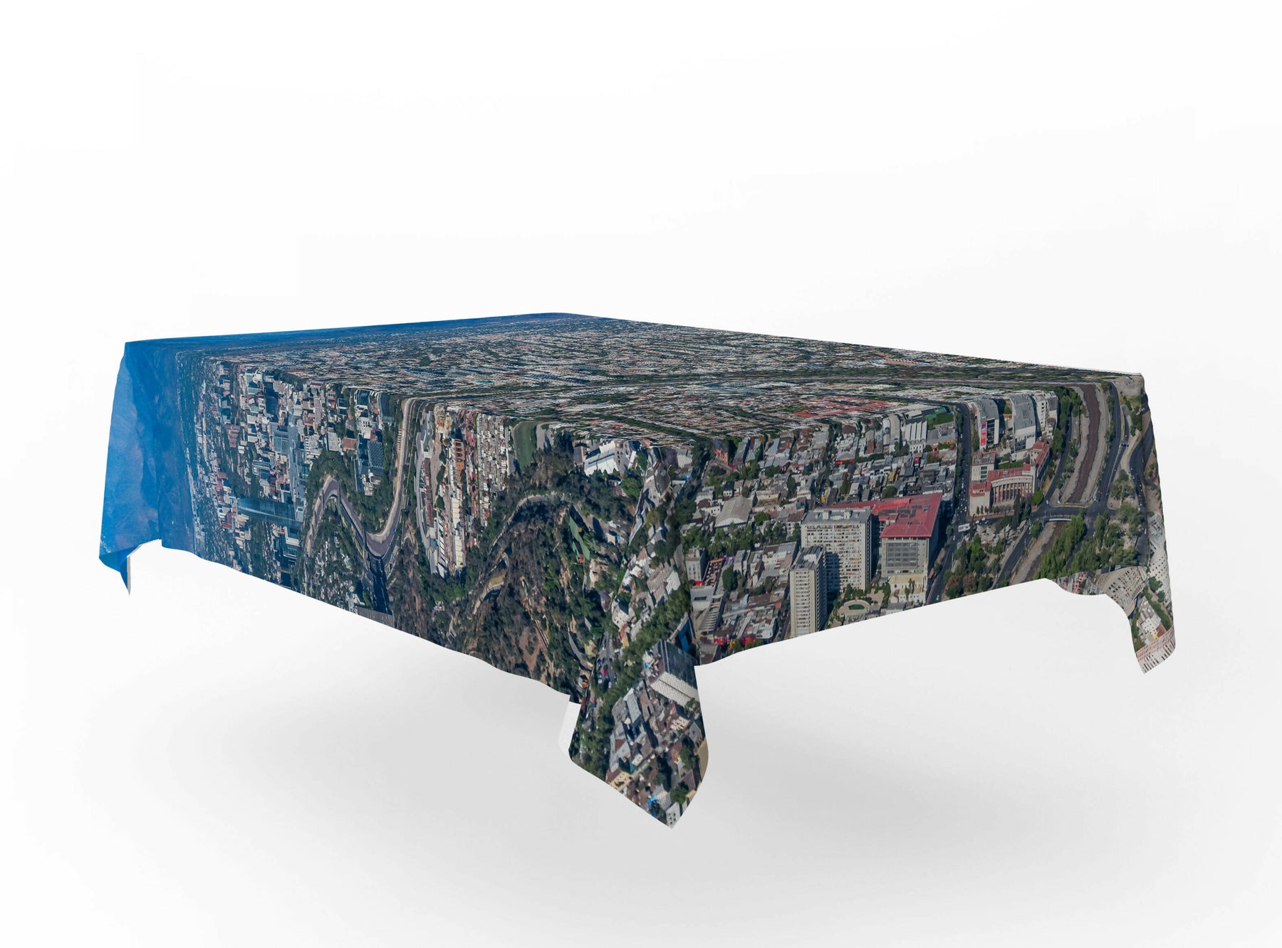 Mantel antimancha con fotografía de Santiago. Aparece parte del centro de Santiago, Providencia y el sector oriente.