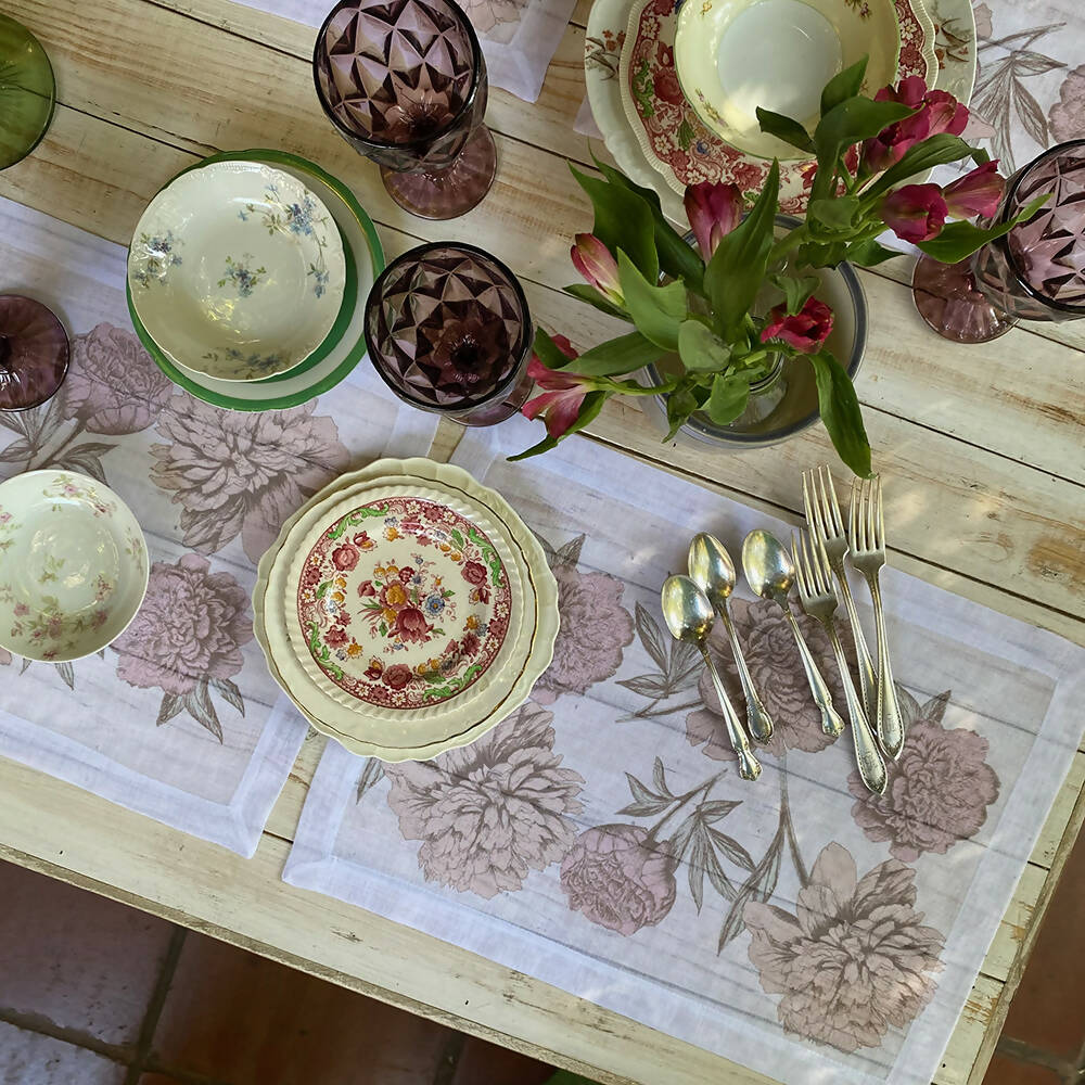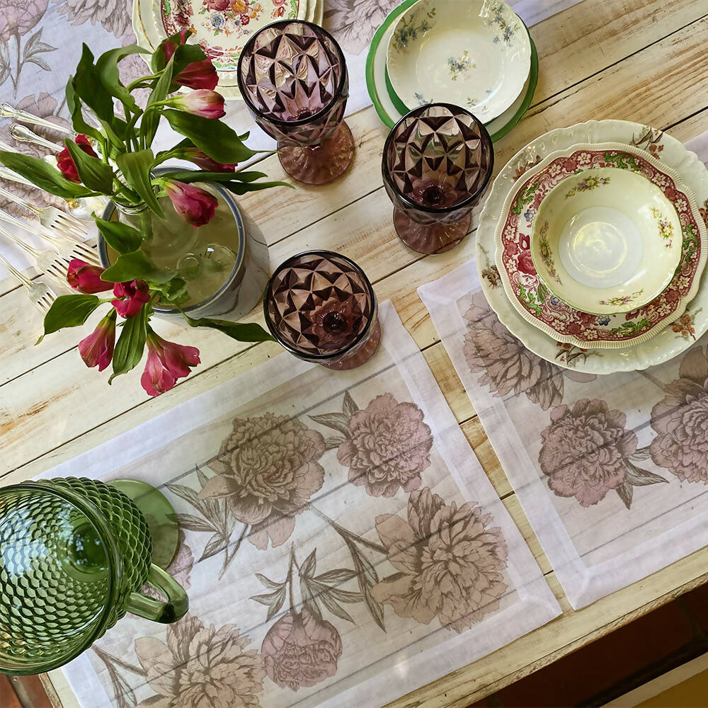 Set Individuales Gardenia – Velo Organza (poliéster), estampado.