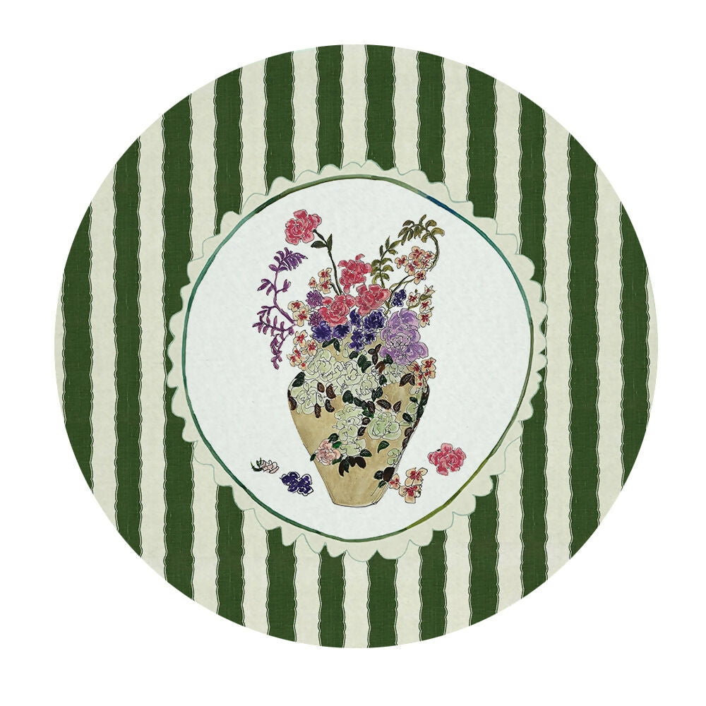 Set de 4 preciosos bajoplatos Rayas Verde de 35 cm de diámetro.
