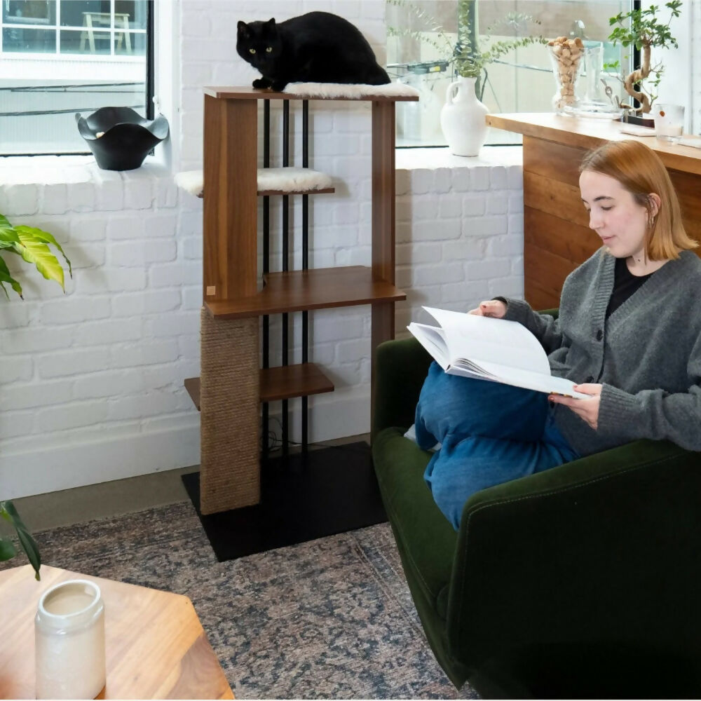 Un mueble-rascador elegante que ilumina tu living y satisface el instinto trepador de tu gato. Estilo moderno, estabilidad y zonas de descanso en altura.