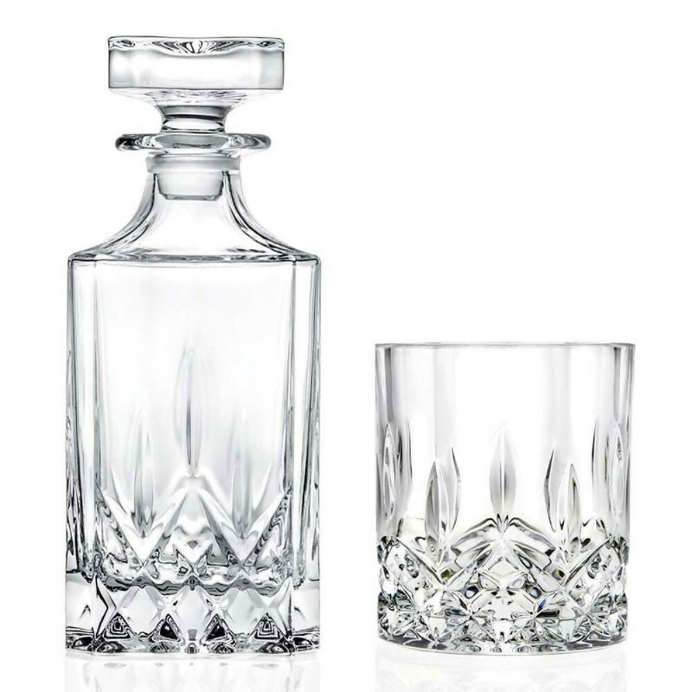 Set de 7 piezas whisky ( 1 Botella de Whisky cuadrada + 6 vasos whisky opera)