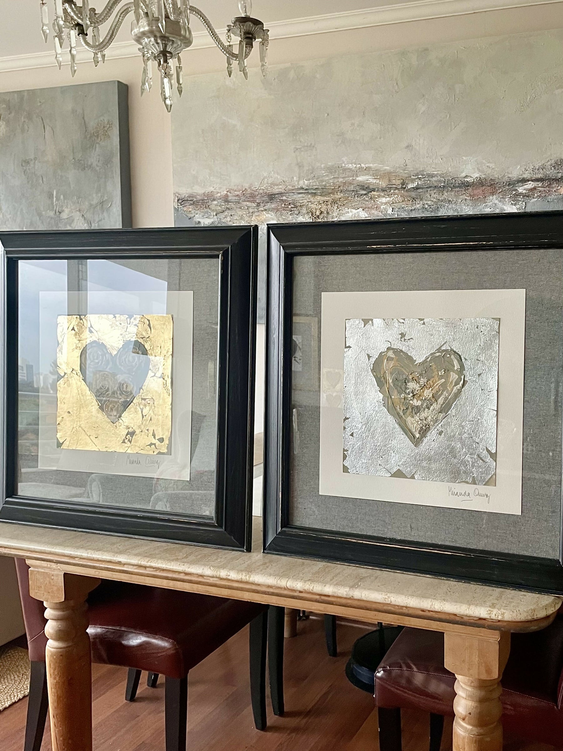 Original sobre esparto de 300 grs, técnica mixta, acrílico, tintas, textura con pasta de polvo de cuarzo, lámina oro o plata, respaldo de lino de cuya.